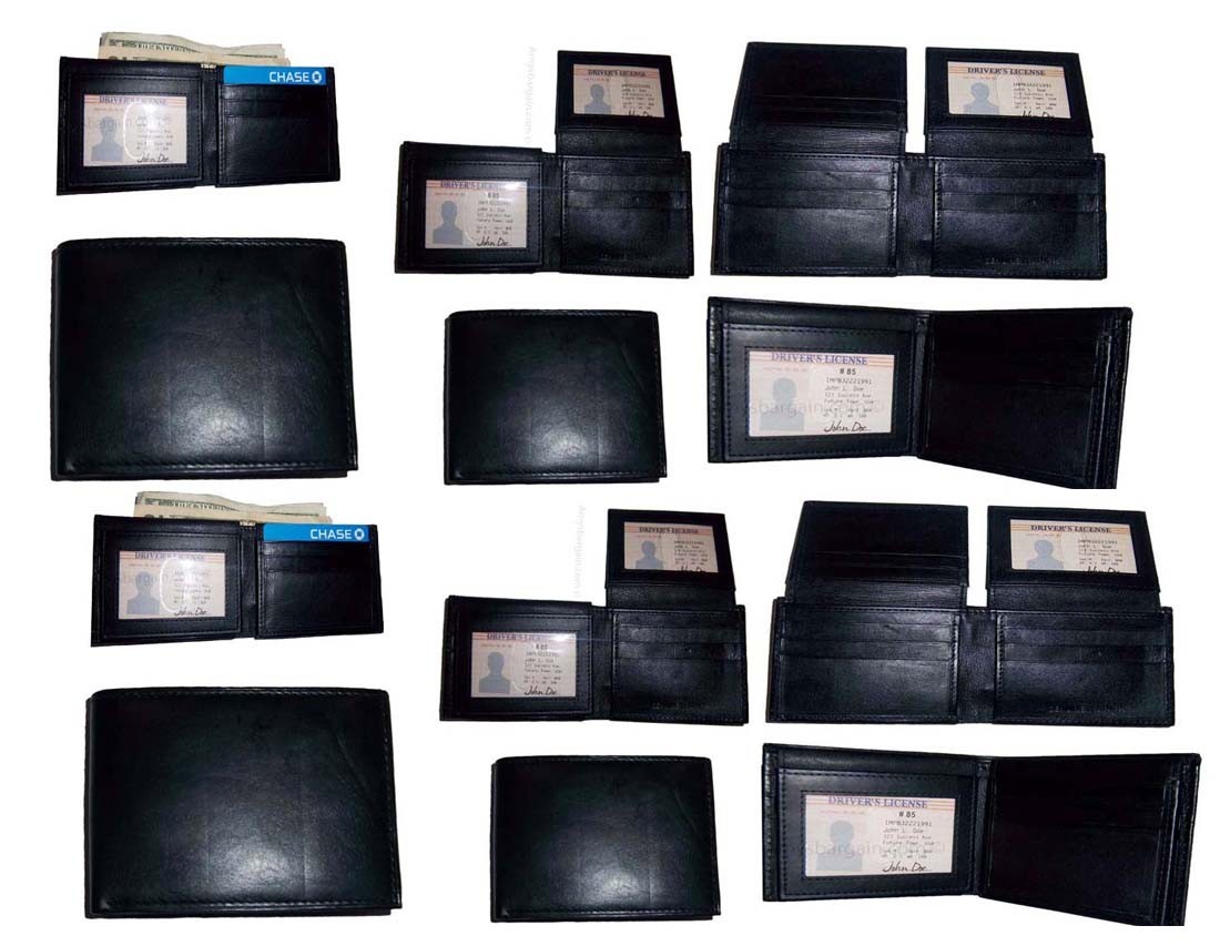Lo of 12 Man's bifold Leather Wallet genuine leather 12 card 2 IDs billfold new