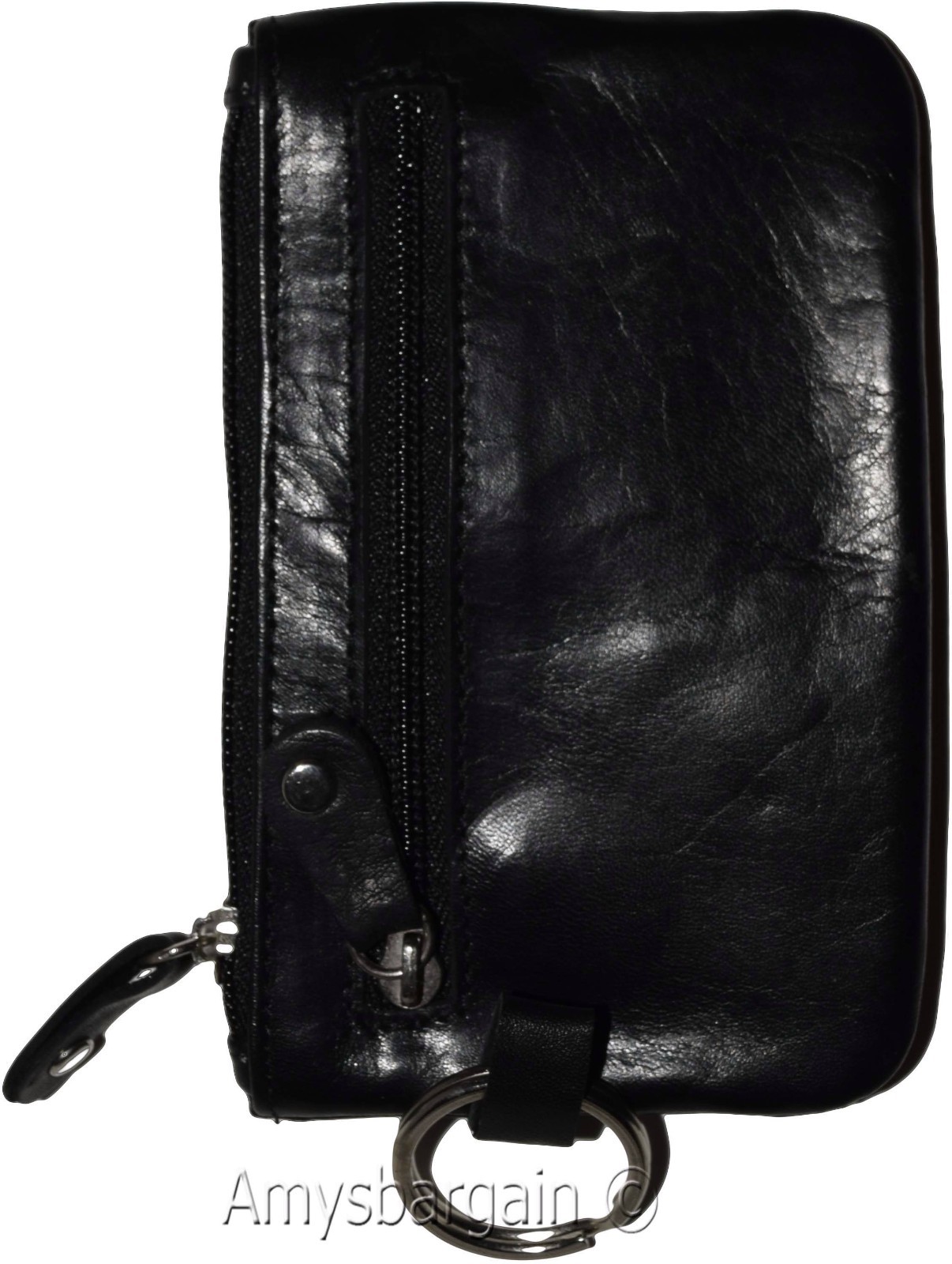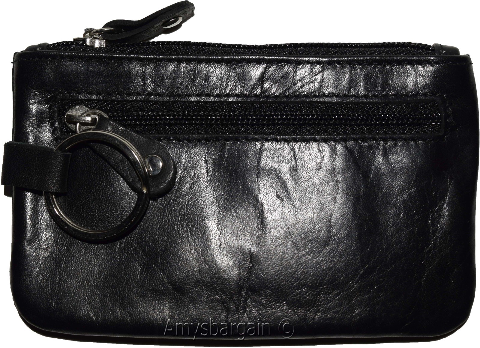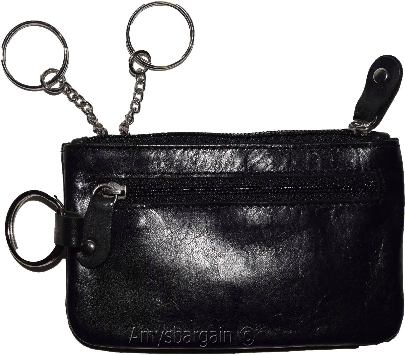 Lot of 12 Leather change purse,Black Zip coin wallet 2 pocket coin case key ring