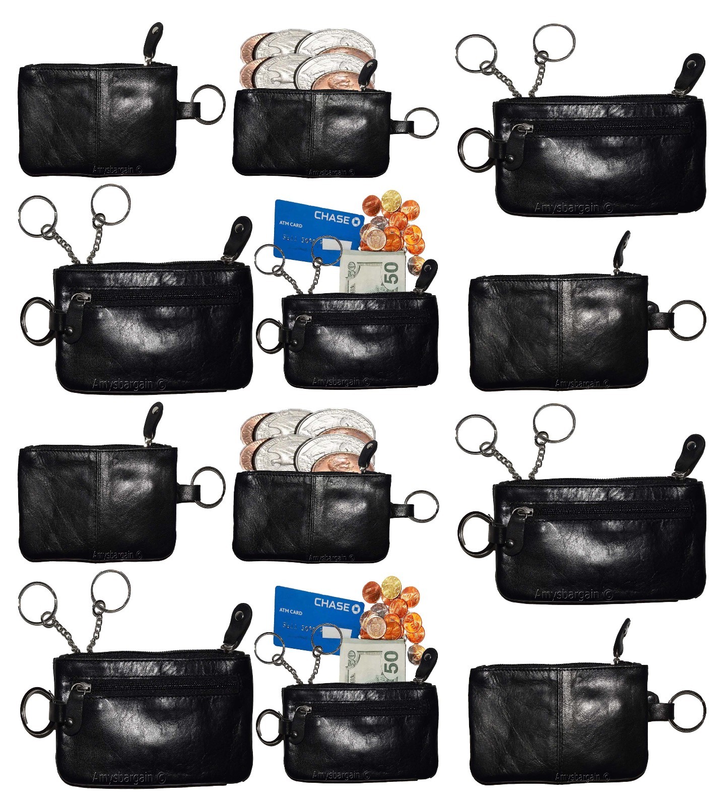 Lot of 12 Leather change purse,Black Zip coin wallet 2 pocket coin case key ring.