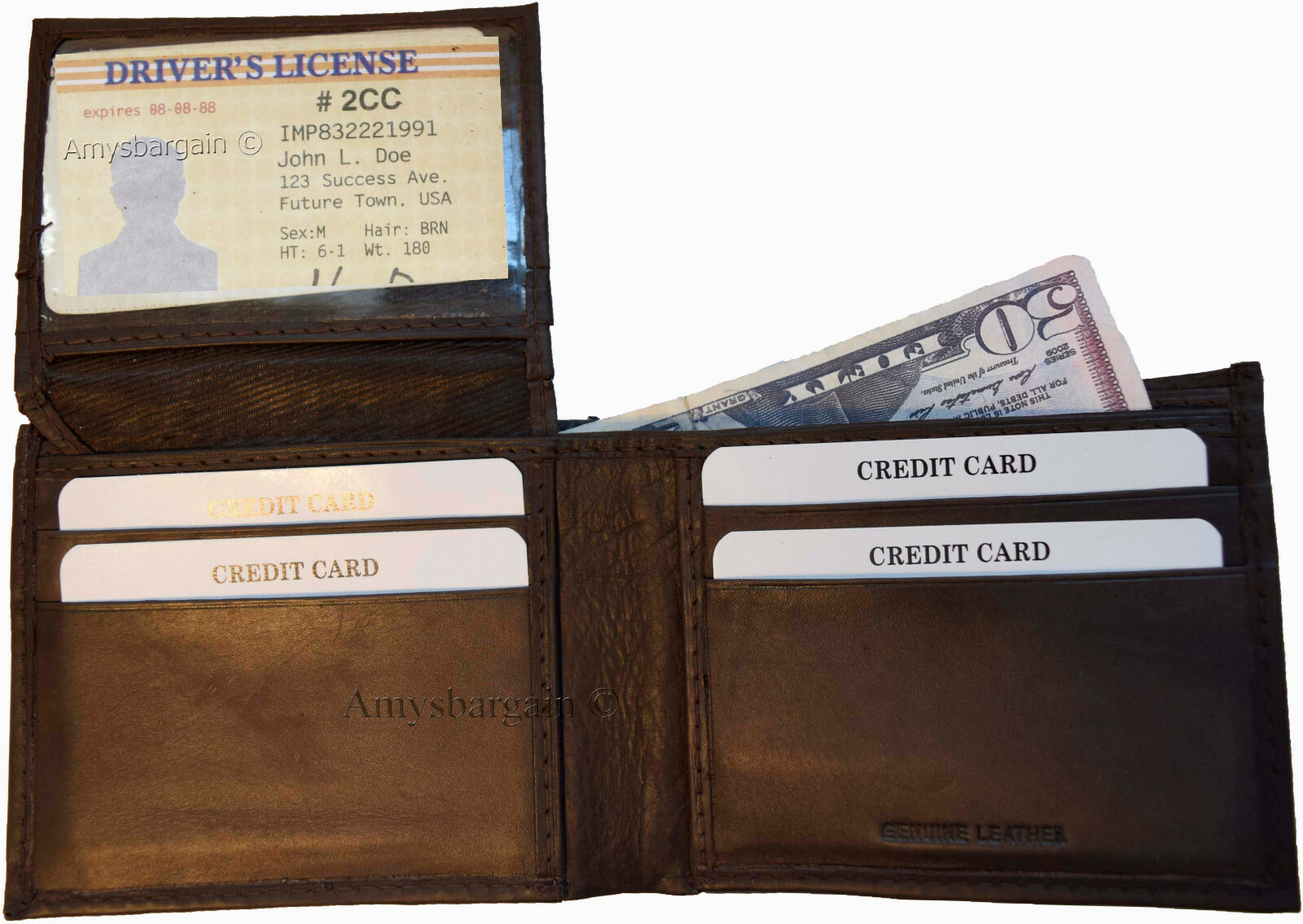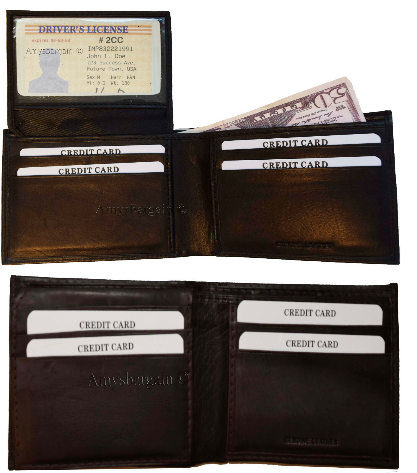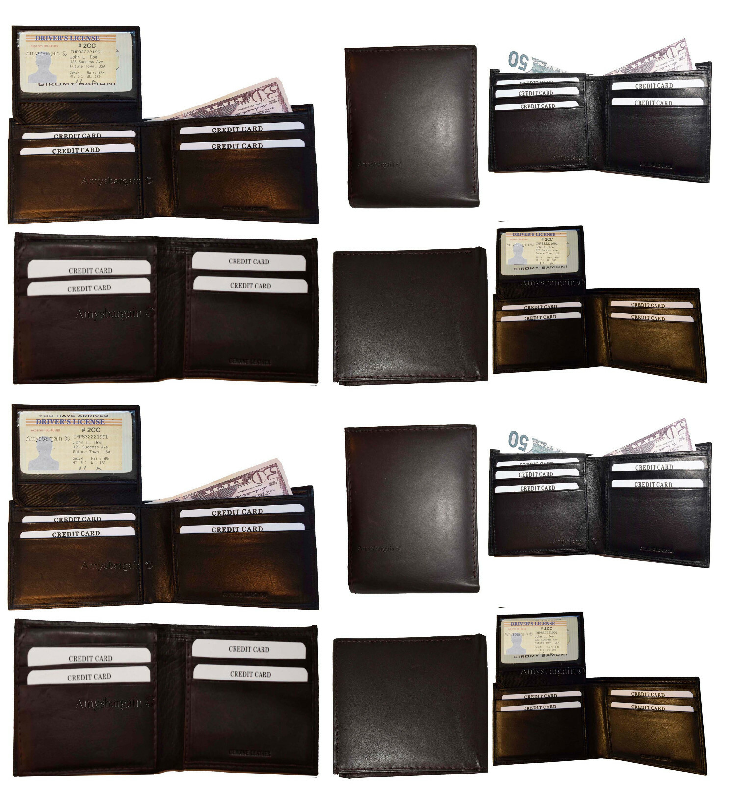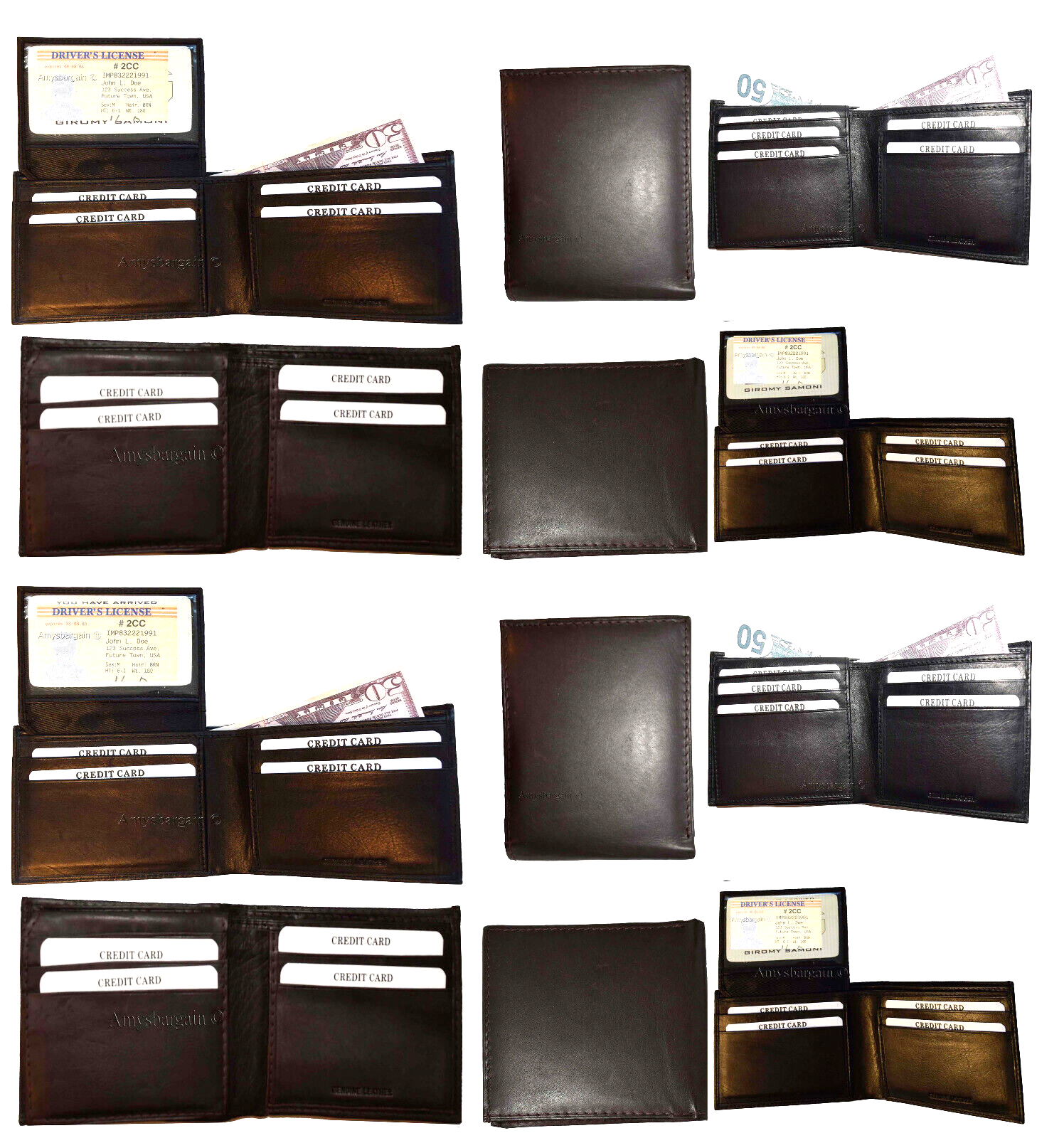 Lot of 12 Men's Brown Bifold Calfskin leather 2 Billfold pockets ID Window B New