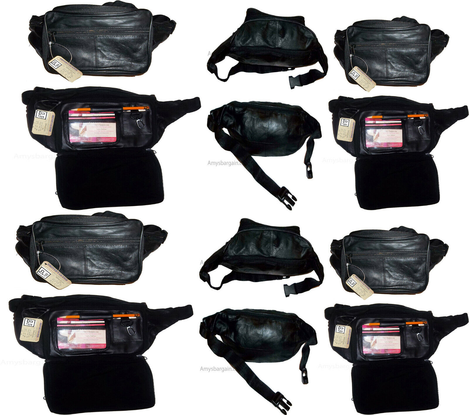 Lot of 12 new leather waist pouch. black waist bag, leather bag, fanny pack new.Description:This is a Jumbo size leather waist pouch. It is made out of a very soft top grain lambskin leather, it has multiple pockets and an adjustable waist strap.Act now! It won't last at this price.Item Details:
