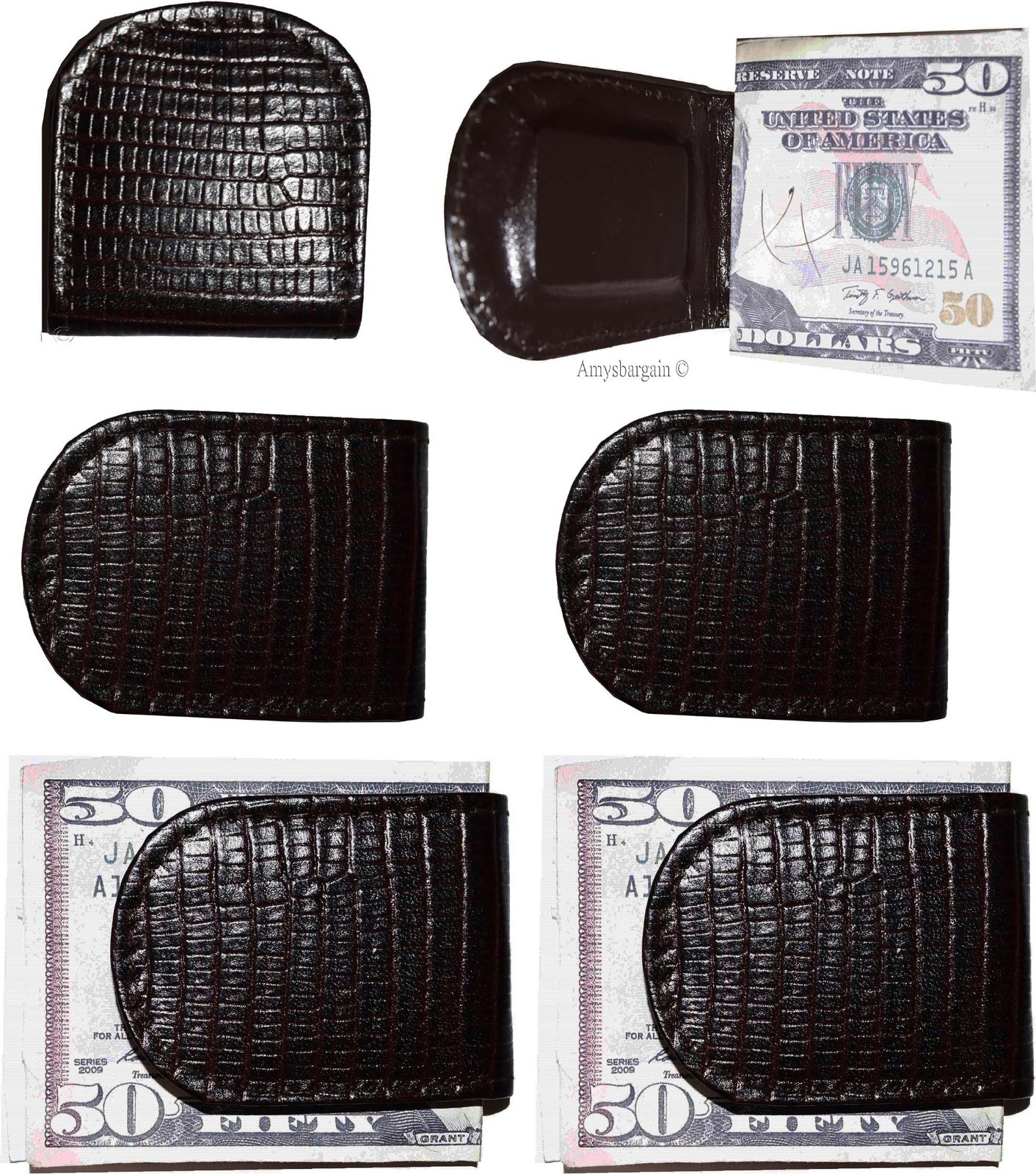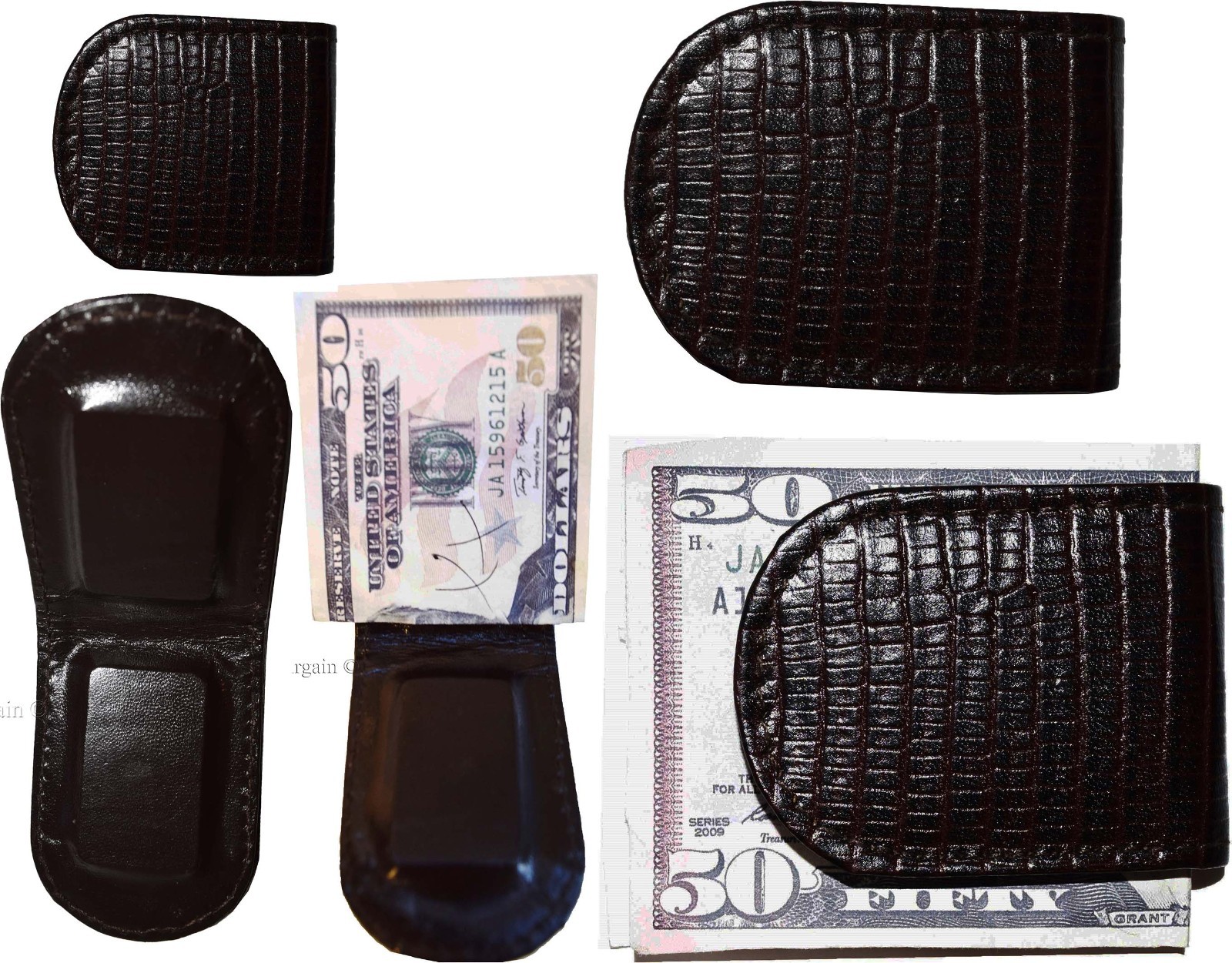 - Item: Lizard skin printed leather money clip.