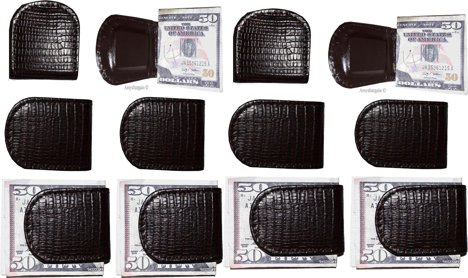 lot of 12 new lizard printed leather money clip brown unbranded money clip.