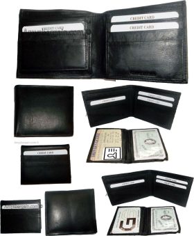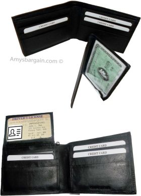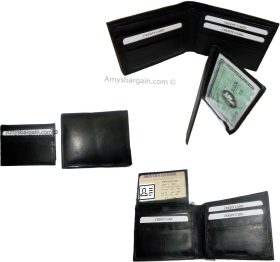 Lot of 12 new men's soft leather black billfold wallet 9 credit atm card 2 ID BN.