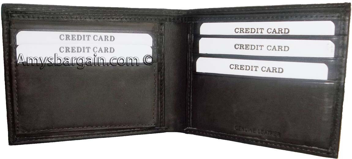 lot of 12 new men's soft leather brown billfold wallet 9 credit atm card 2 id bn