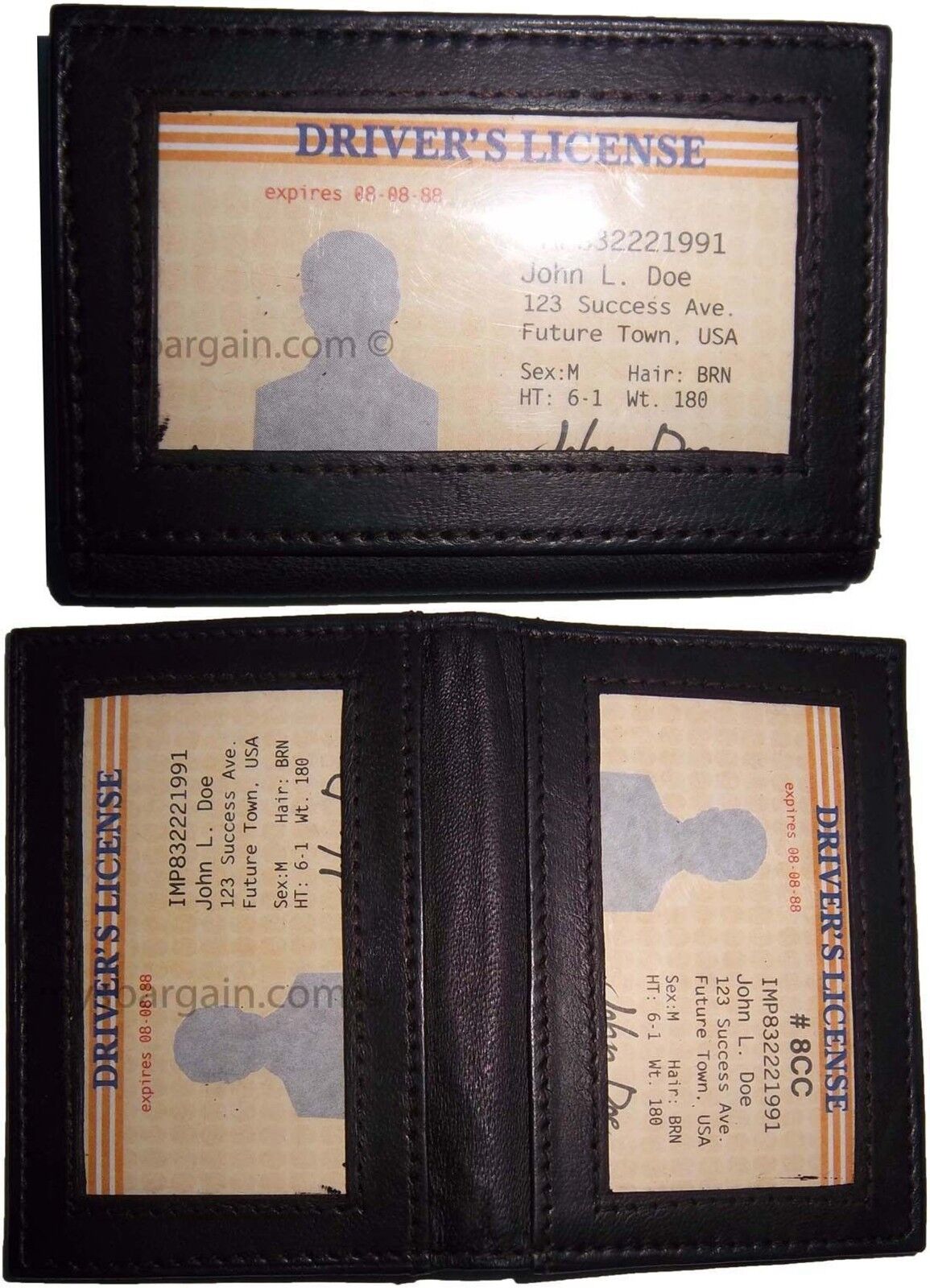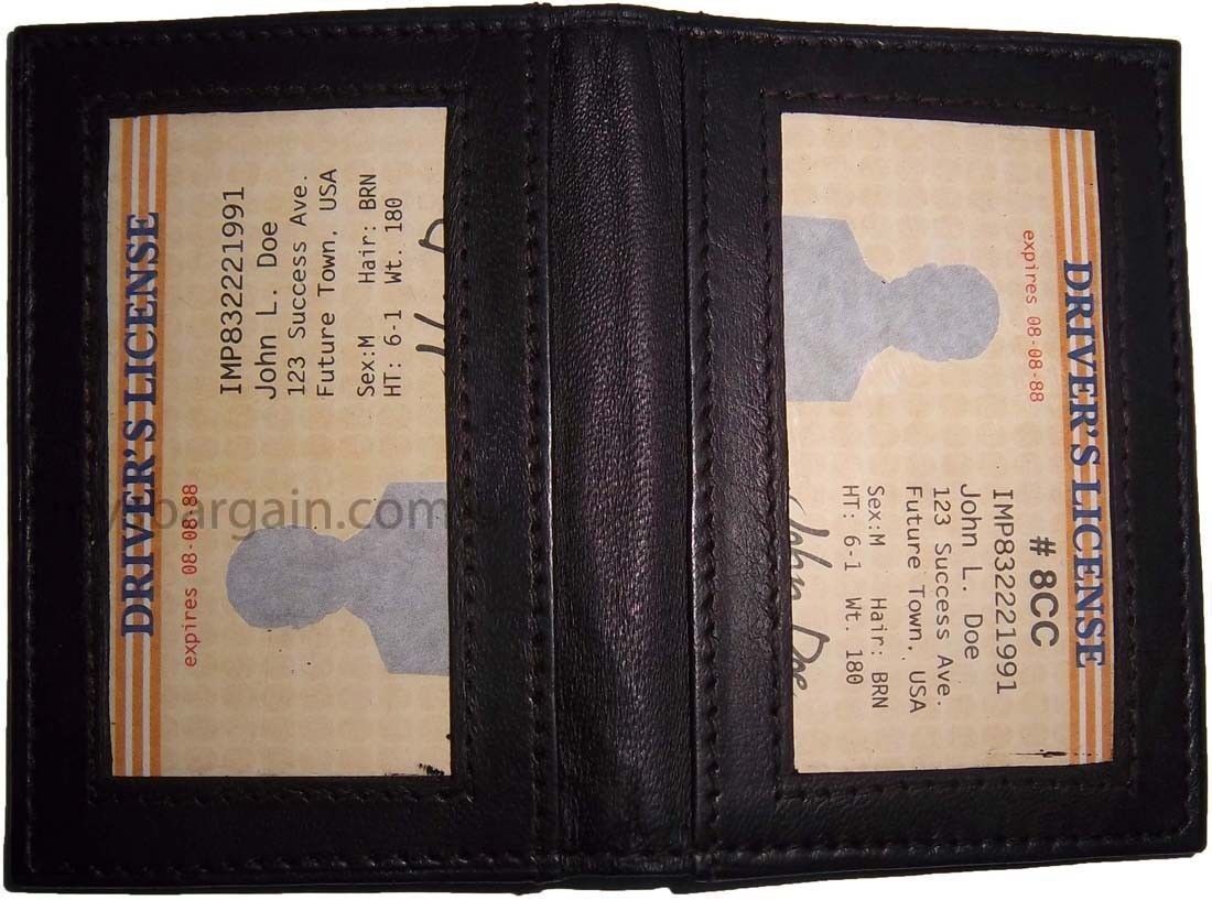 It has 3 card slots and 3 transparent windows. It is made out of durable leather. It has a sleek design.