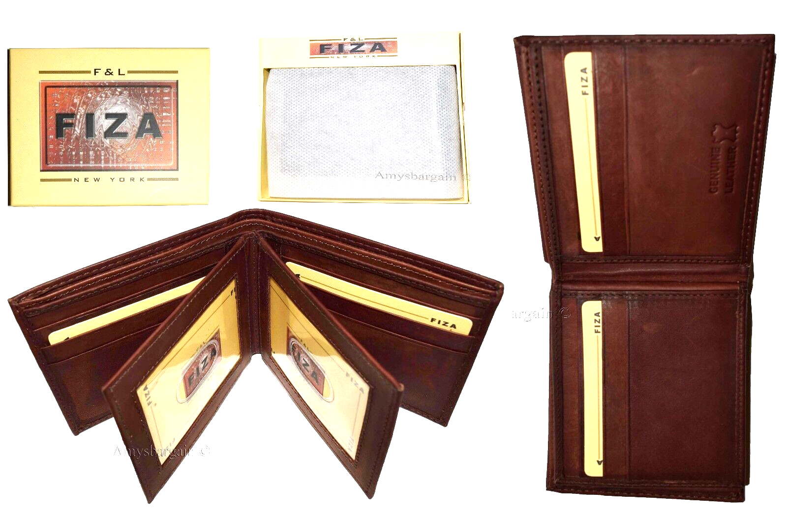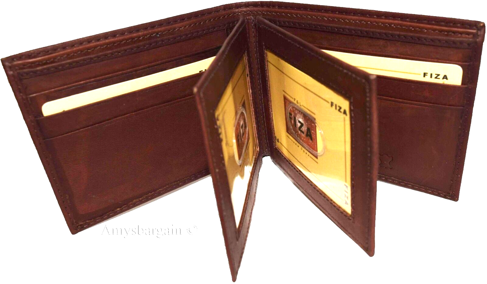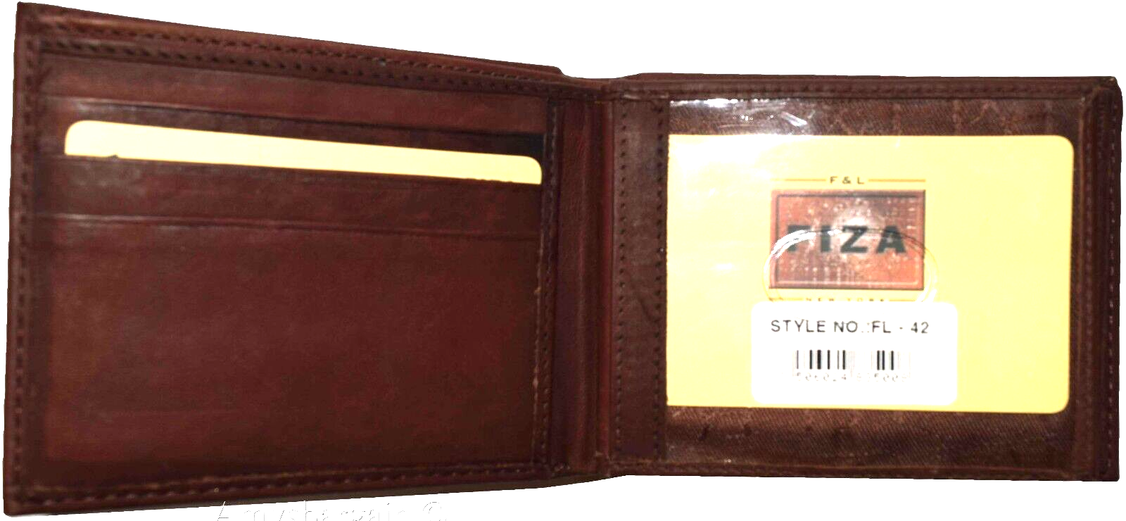 Lot of 2 Leather men's Bifold wallet Tan Billfold wallet 9 Card 3 ID New in Box.Description:Buy the lot and save a lot!This Fiza NY wallet is very stylish. It is well-made out of strong leather. This men's wallet has 2 flip side 3 ID center pieces. This wallet would make a nice gift item, or, treat yourselves to it.It has 3 ID windows, 9 card spaces and 2 billfold pockets.Act now! it won't last!Item Details: