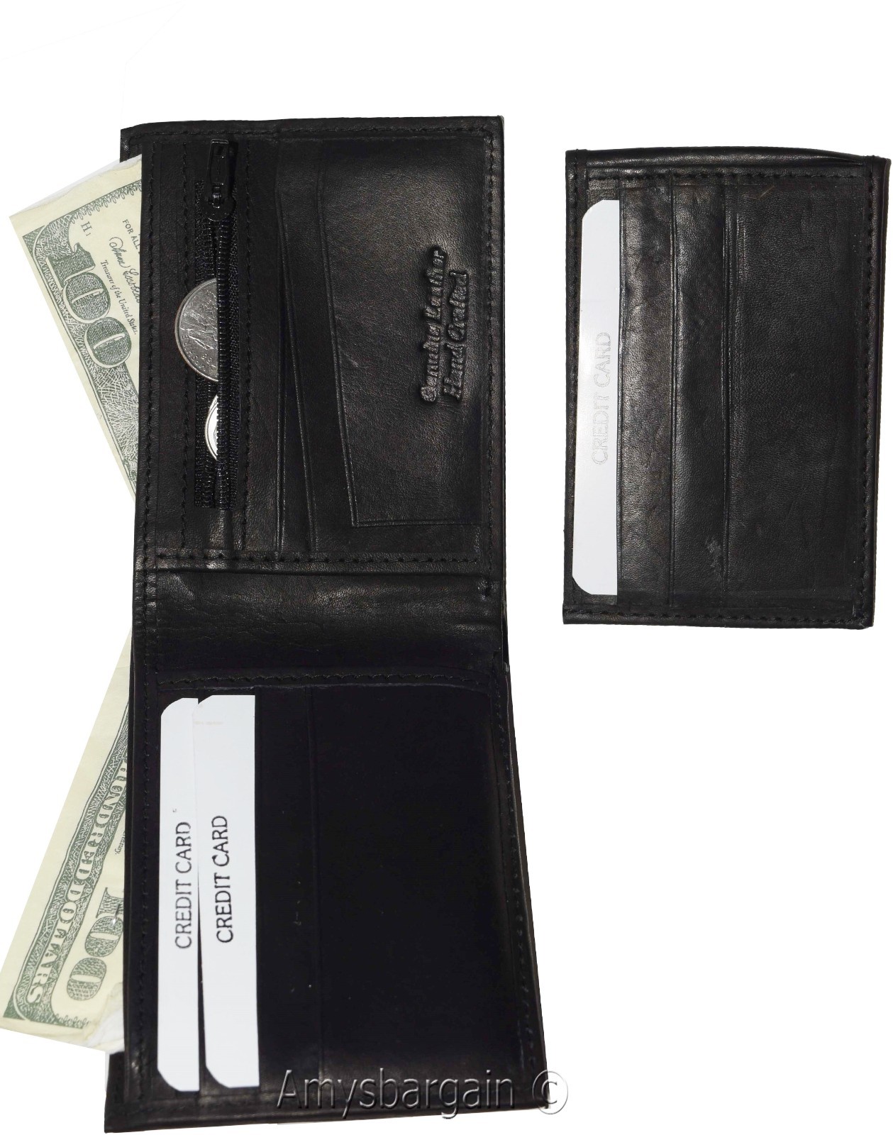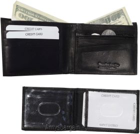 Description:Buy the lot and save a lot.Ask us about our wholesale prices that can help you grow or start your business.This man's wallet is a 2-in-1. It's a full size wallet with a detachable miniature wallet that has a small billfold, 3 card slots and 3 ID windows.(1) The main wallet has 6 card spaces, a mini zip coin pocket, 3 billfolds: 2 open for easy access 1 zip.(2) The miniature detachable wallet has 3 card slots, a small billfold and 3 ID windows.This fine leather wallet would make a great gift item, or treat yourself to it.Act now. It won't last at this price!Item Details: