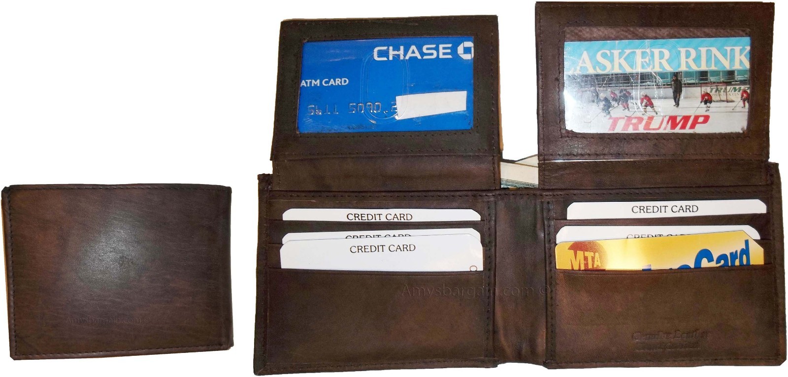 Description:This wallet is made out of fine quality fine grain cowhide leather. This men's wallet has 2 easy in-and-out I'D windows, 12 card spaces and 2 suede lined billfold compartments.This wallet would make a nice gift, or, treat yourself to it.Item Details: