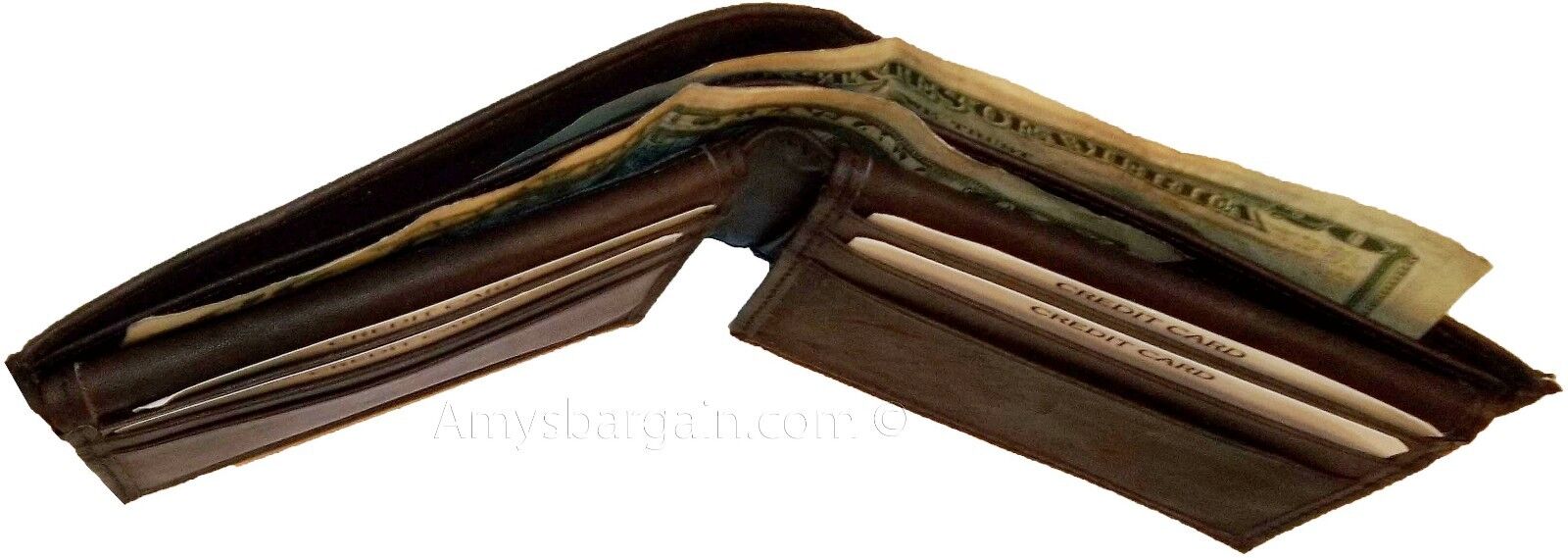 Description:This wallet is made out of fine quality fine grain cowhide leather. This men's wallet has 2 easy in-and-out I'D windows, 12 card spaces and 2 suede lined billfold compartments.This wallet would make a nice gift, or, treat yourself to it.Item Details: