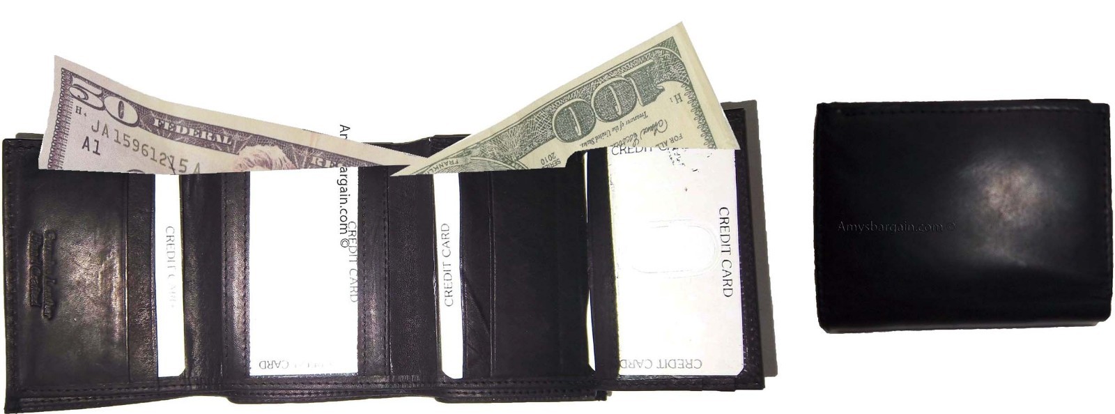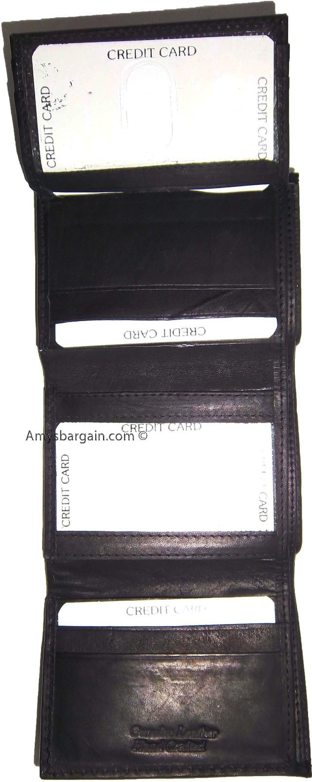 Description:This uniquely styled top grain quality leather and sued lined interior trifold wallet can make a great gift item. Or, treat yourself to it.Item Details: