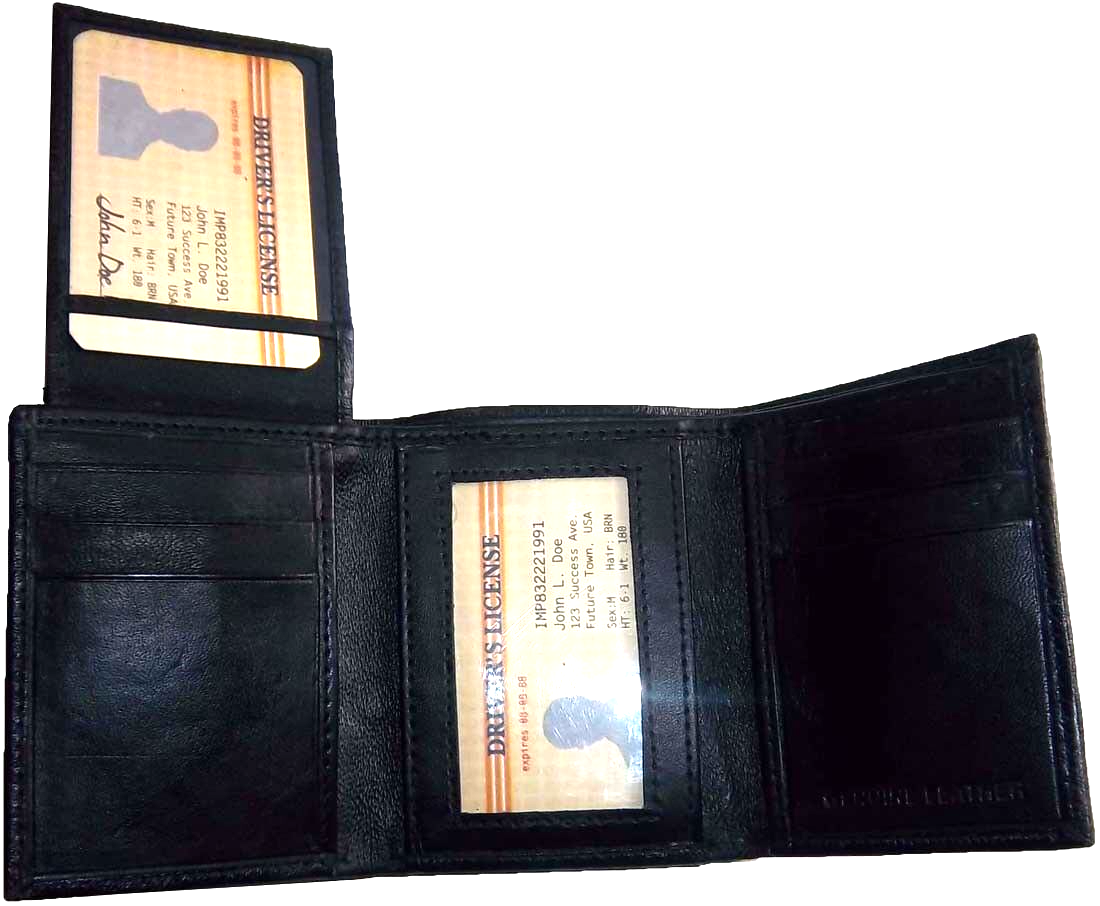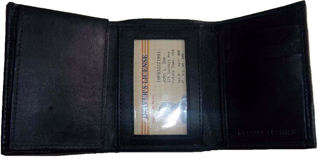 Lot of 2 Men's leather wallet. Genuine Leather Trifold man's wallet 6 cards 2 ID.Description:This is a leather wallet, it is great for a gift for someone that has it all or just treat your self to it.This tri fold men's wallet has 2 transparent windows, 6 card spaces. 2 billfold compartments. Not to mention, 3 secretly hidden card spaces.Act now! They're almost gone.Item Details: