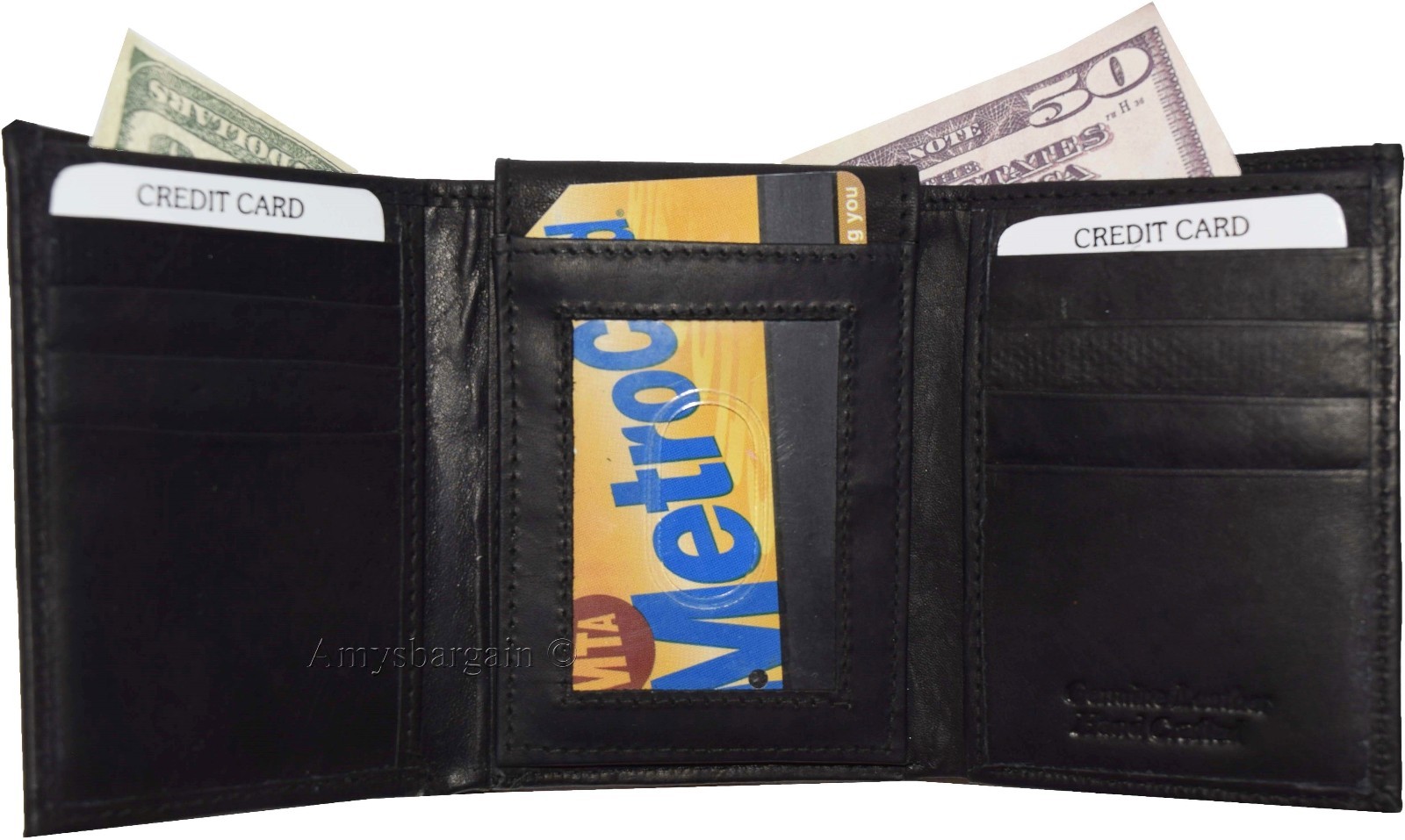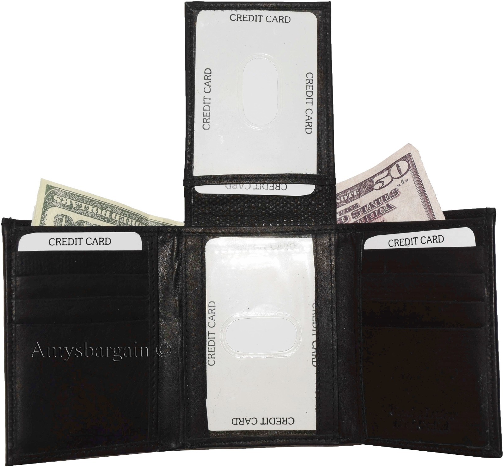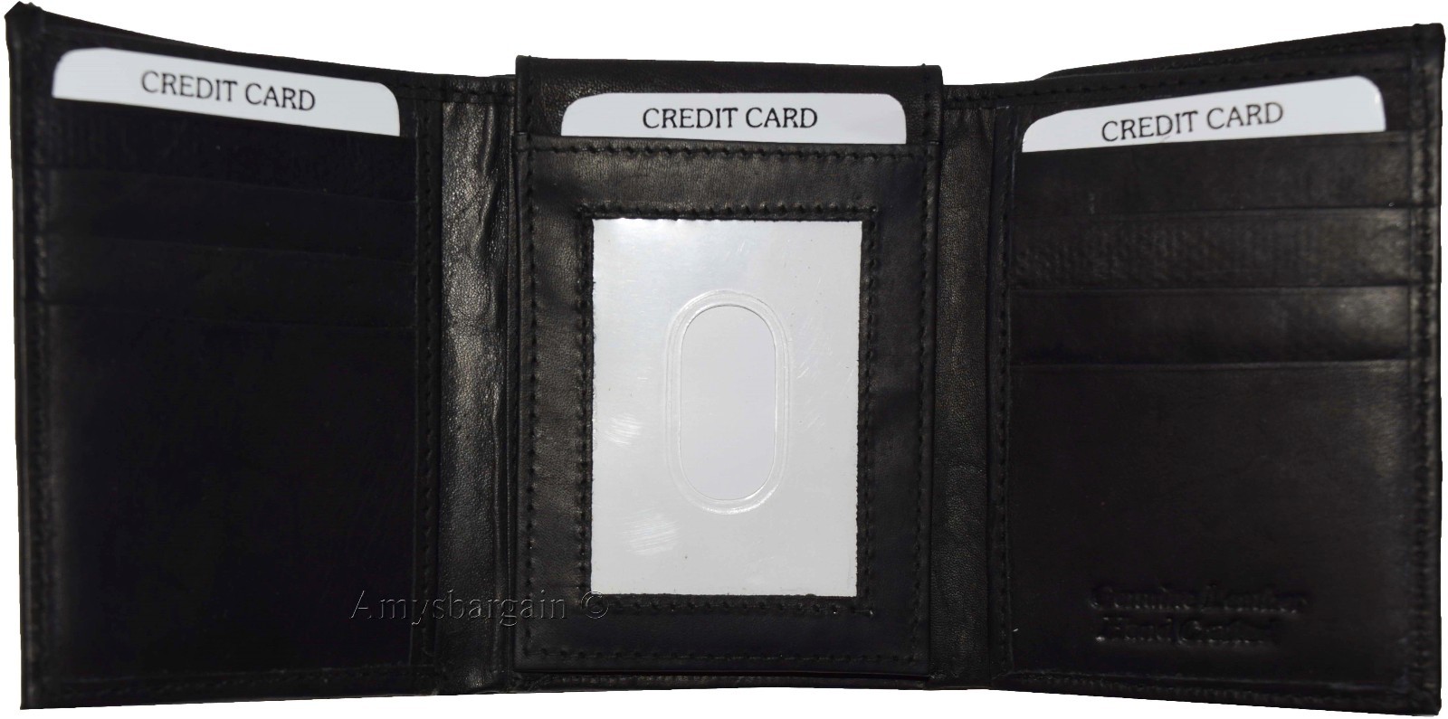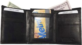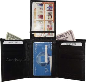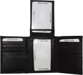 Lot of 2 New Men's Trifold Leather Wallet 3 ID center piece Black 2 bill slots