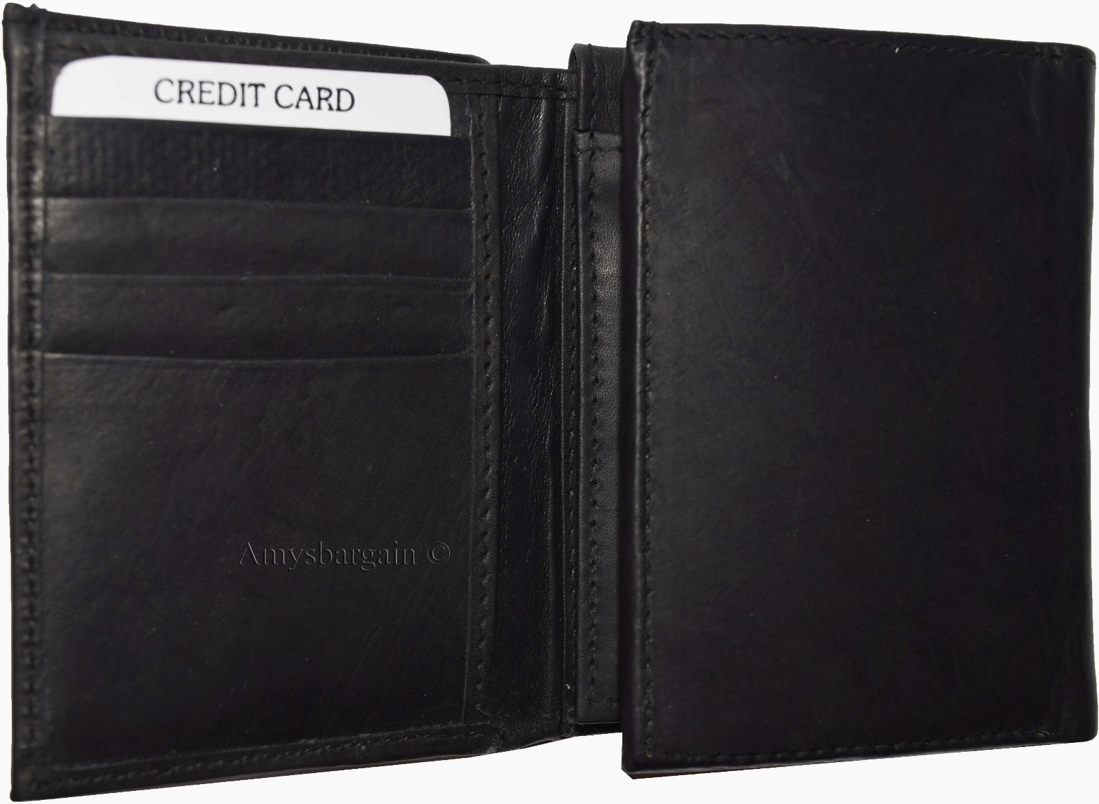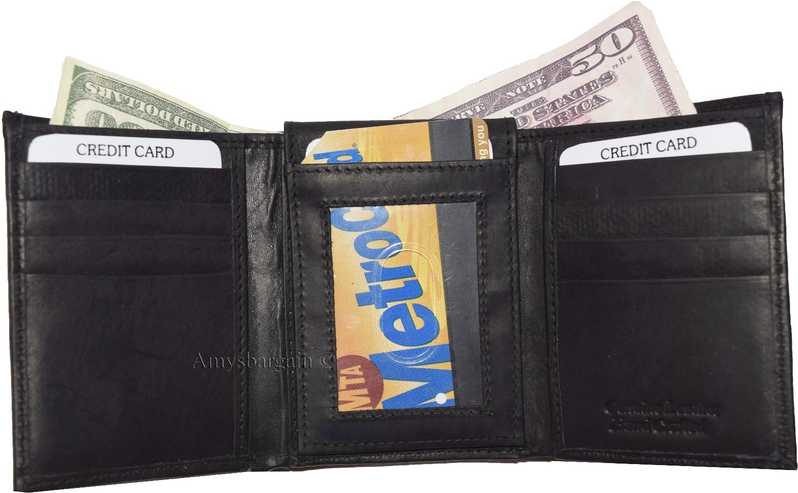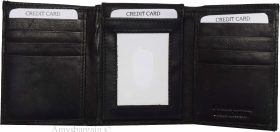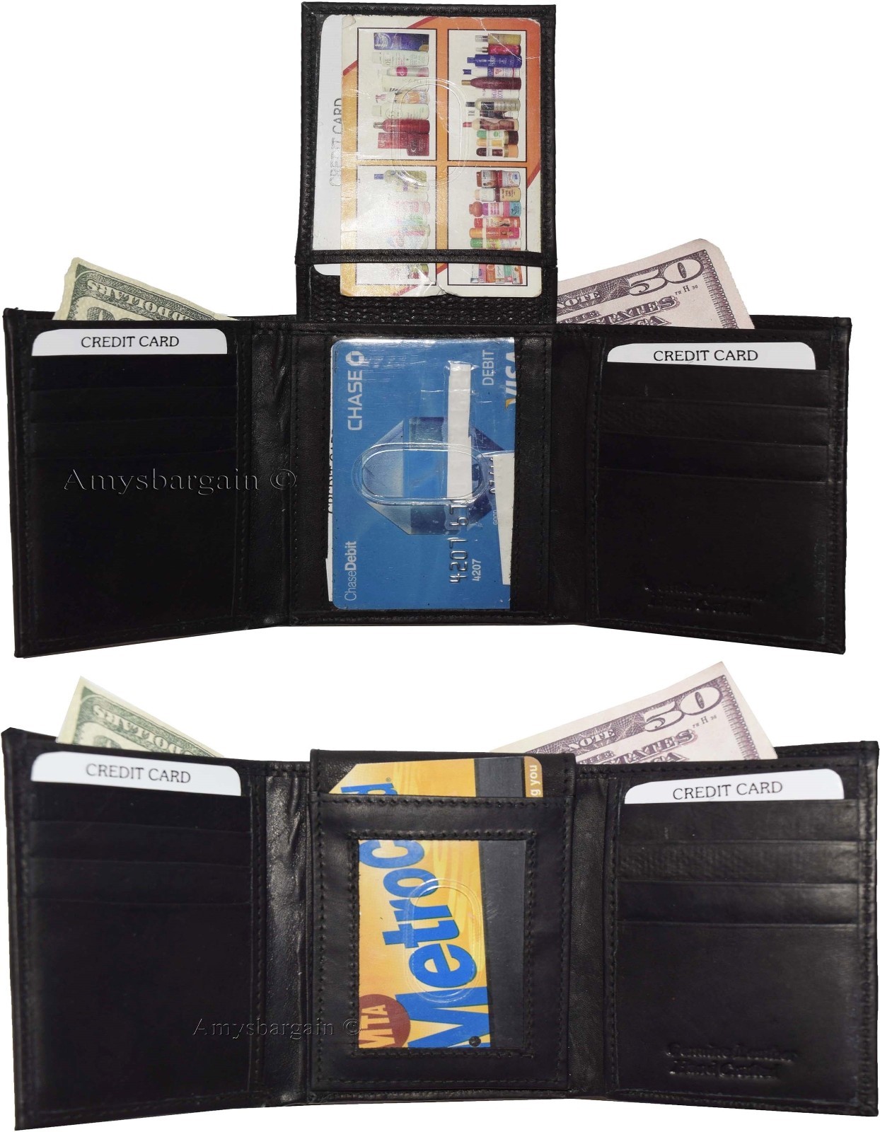 Lot of 2 New Men's Trifold Leather Wallet 3 ID center piece Black 2 bill slots