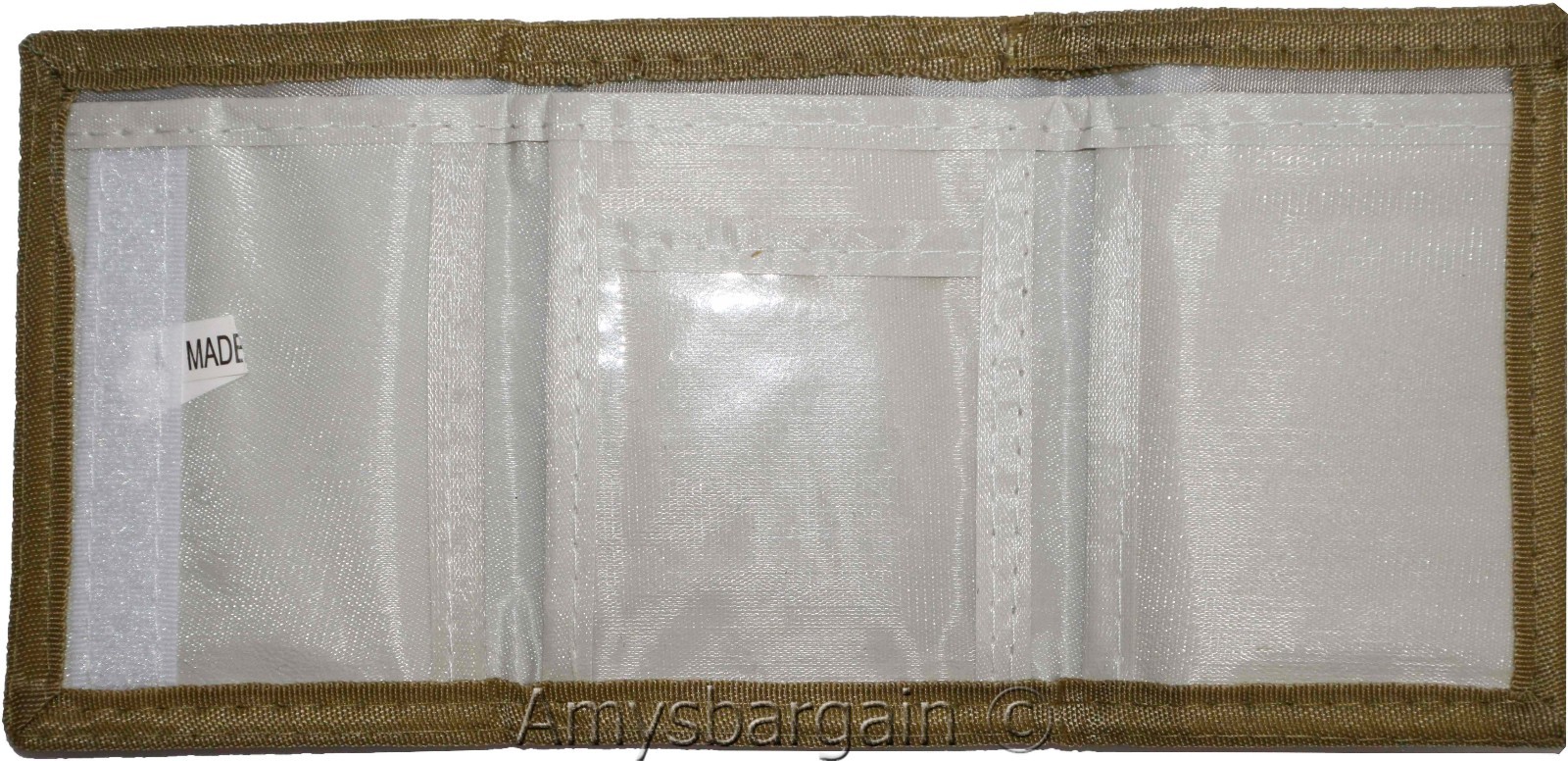 open billfold wallet 3 pocket man's wallet.Description:Buy the lot and save a lot!This is a U S A currency monogrammed-on tri fold men's wallet. It has 1 large zip billfold pocket, 2 side pockets and a transparent ID window.Act now!Item Details: