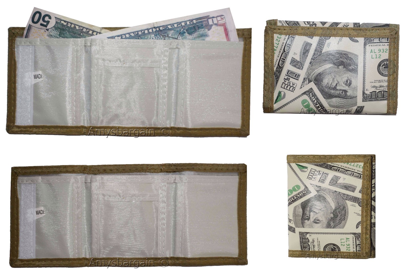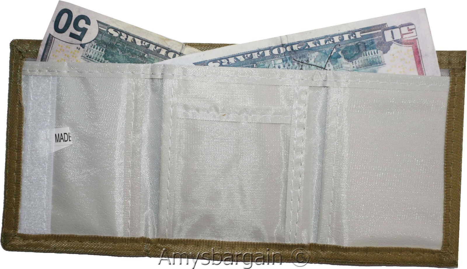 Re- order number: moneytrifold.·What's included? Trifold wallet. Change and other "Demo items" are not included.Manufacturers Suggested Retail Price (MSRP): $6.95 each.Buy it now it won't last!