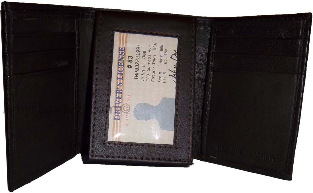 Lot of 2 New Trifold Leather Men's wallet Brown 1 ID 9 card 2 bill slots br new