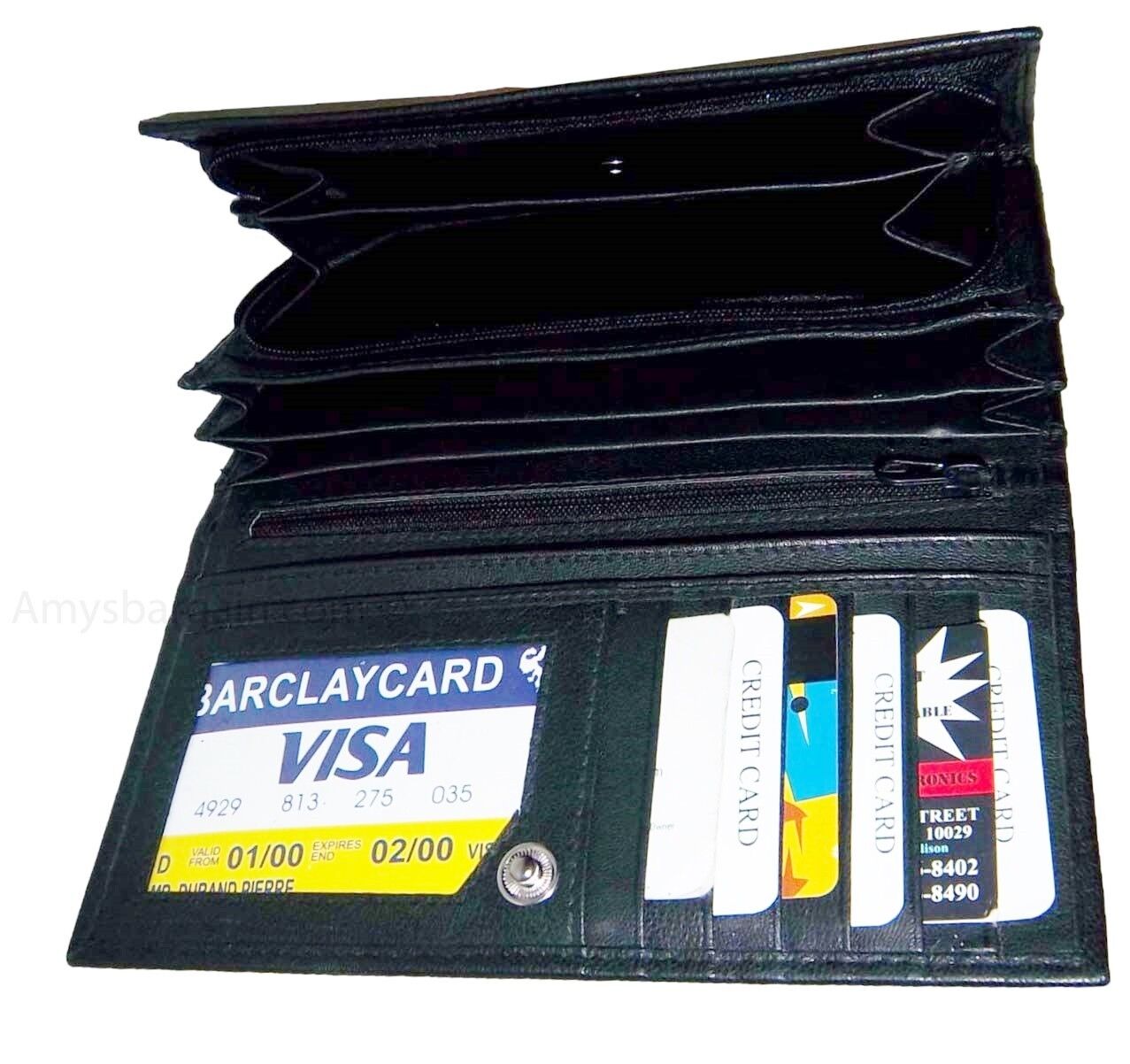 Lot of 2 New Woman's Leather checkbook wallet 6 Credit card 7 Bill pockets BNWT.Description:This large checkbook wallet has many compartments for separating bills, credit and ATM cards, ID, change and more. It is made out of soft leather that is exceptionally durable.Item Details: