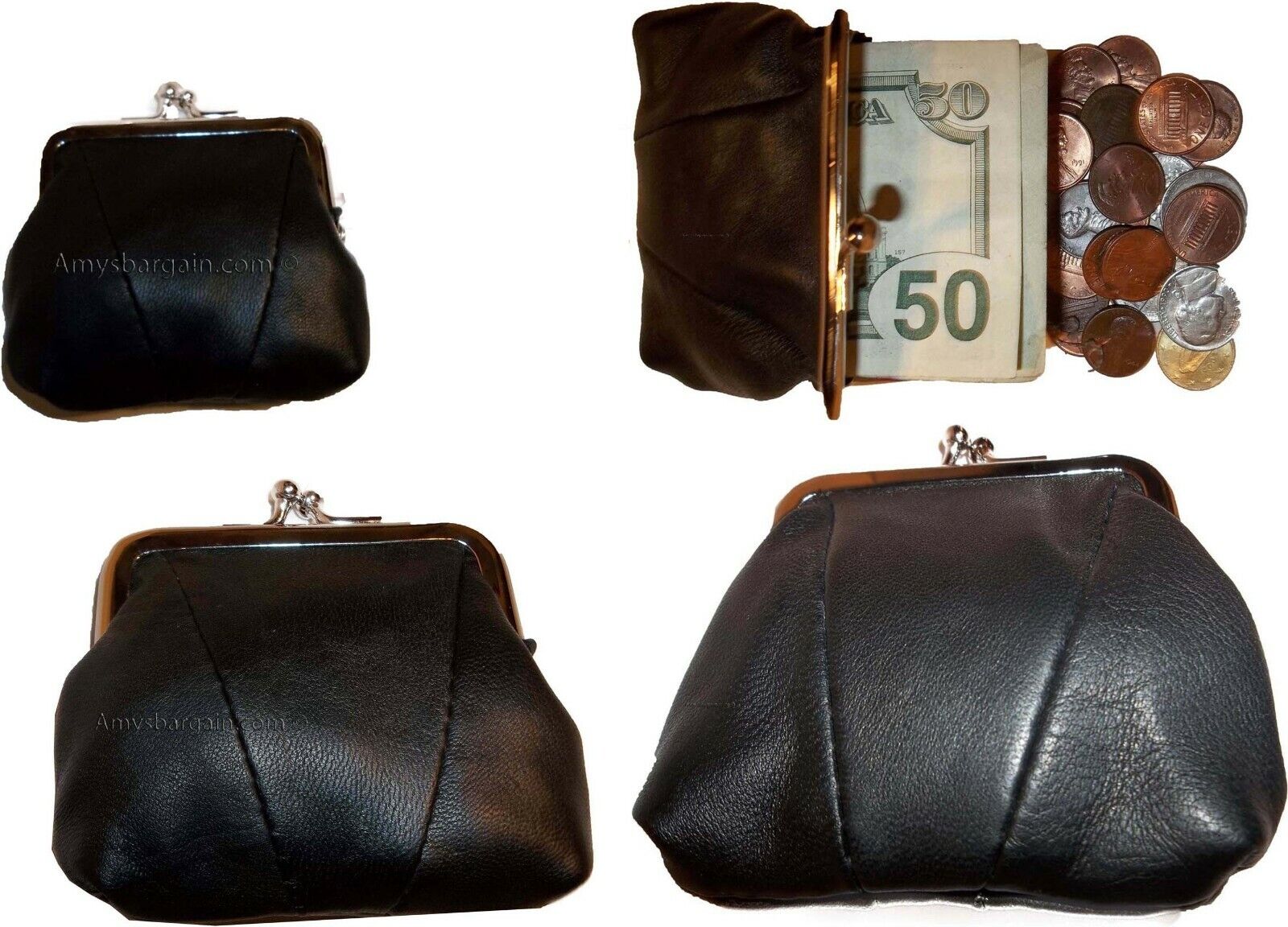 lot of 2 new women's leather change purse coin bag wallet bag hand coin case bn.Description:Buy the lot and save a lot!This easy to use metal framed women's leather coin purse is great for carrying lots of coins and some bills, it can fit other things as well, it is easy to carry around in the palm of your hand, pocket, handbag, or briefcase.This item could also be used for lip-stick or jewelry. It has many other practical uses for, women.Act now it will not last at this price!Item Details:· Item: leather change purse.
