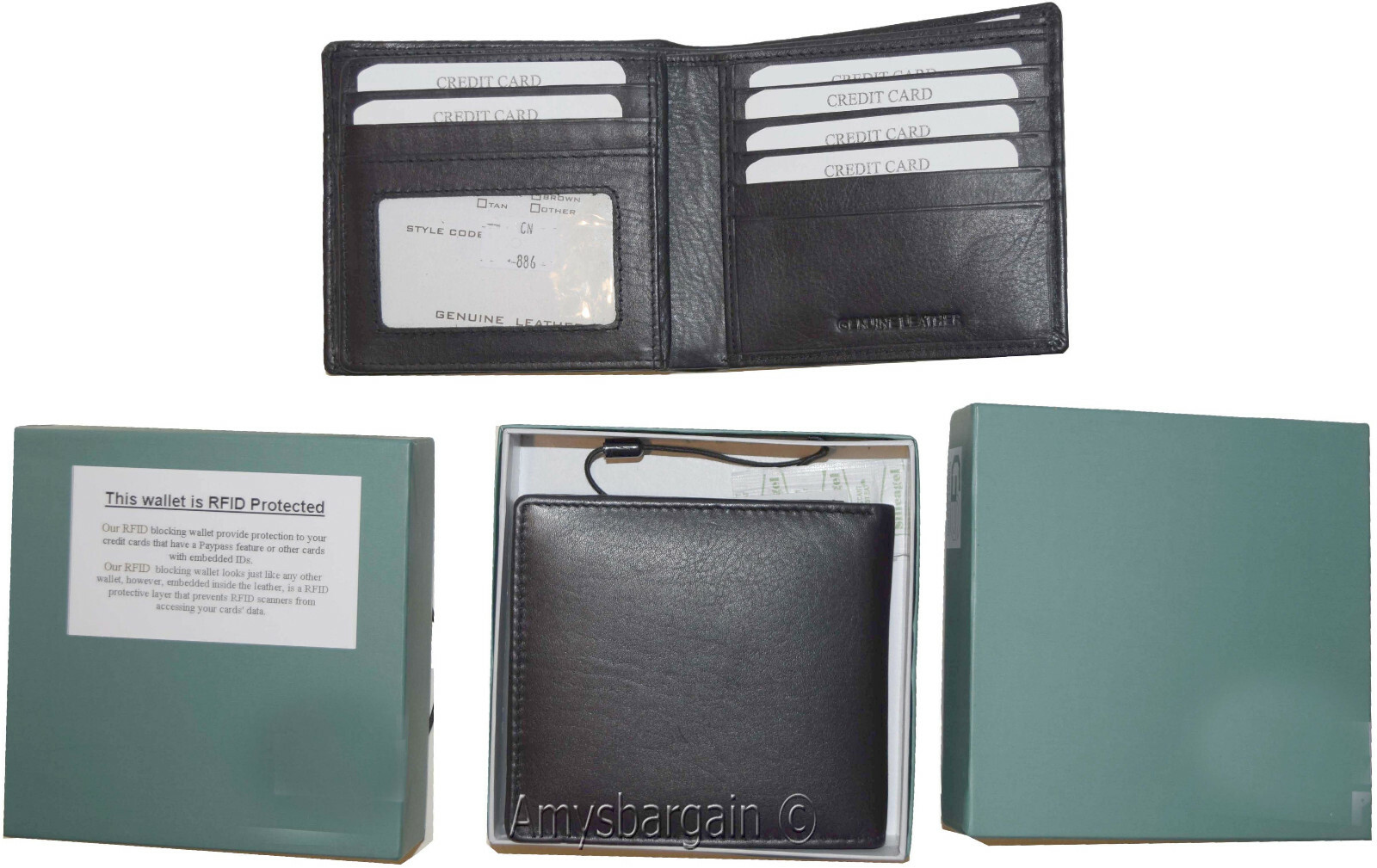 Lot of 2 RFID Men's Hipster wallet Genuine Leather Bifold 17 Card 1 ID New in Box.