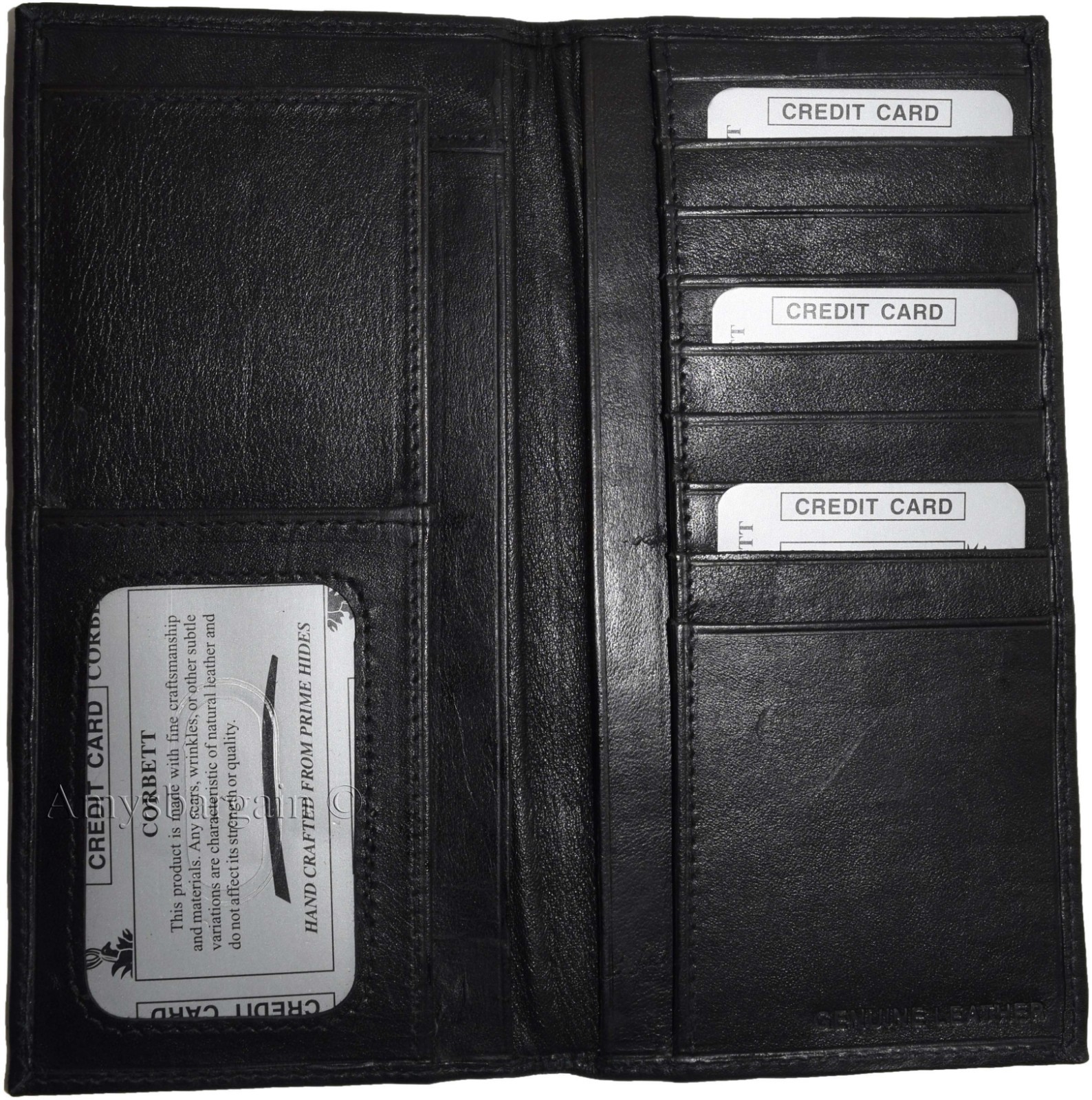Lot of 2 Women/Men's Leather Checkbook Wallet Black Unbranded wallet card case.Description:Buy the lot and save a lot!This item is a top quality, purely beautiful leather checkbook wallet with 3 bill spaces. It can be utilized by either women or men. This checkbook wallet is super slim, yet roomy. It is plain and has a simple design. It has a built-in ID case.The top grain Calfskin leather provides for great feel and exceptional durability.Item Details: