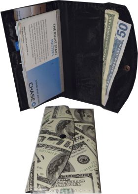 Description:Buy the lot and save a lot!This is a U S currency monogrammed-on checkbook women's wallet. It has 3 large billfold pockets, 5 credit card slots and a transparent ID window.Act now!Item Details: