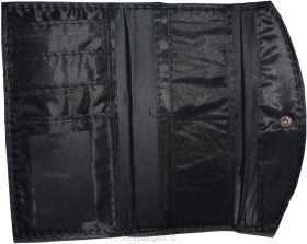 | Features | Cover, 5 credit card slots, 3 large billfold pockets, Checkbook |