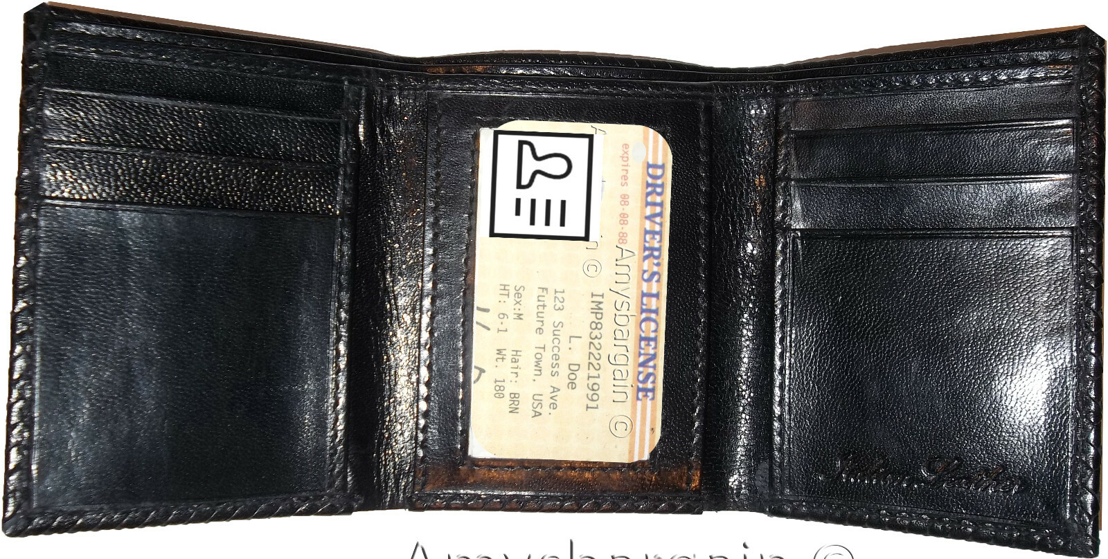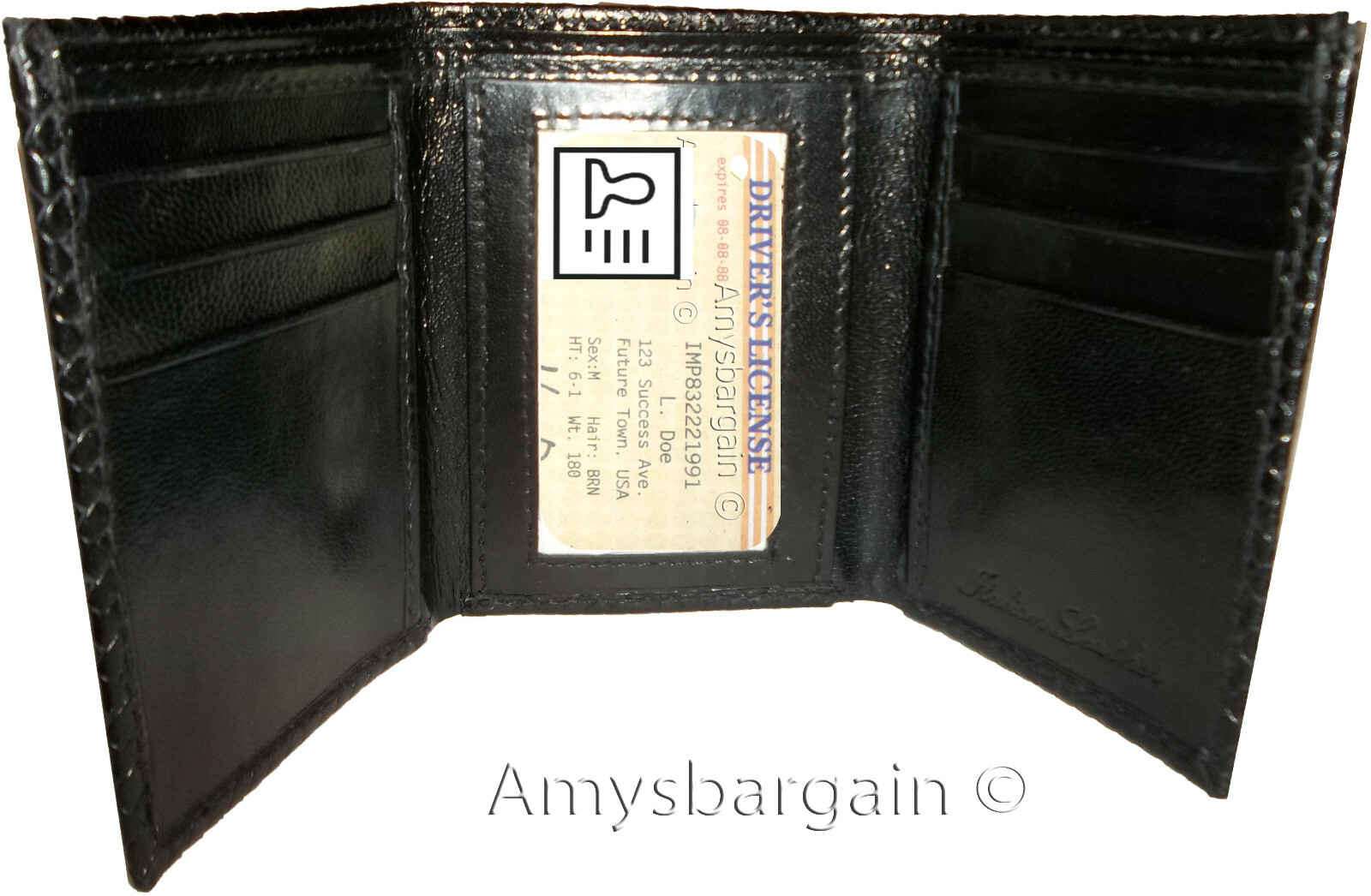 lot of 2 woven printed genuine leather man's black trifold wallet ID credit card.Description:Buy the lot and save a lot!This is a very stylish Italian style woven printed leather men's wallet with an ... read more