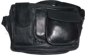 Description:This beautiful Jumbo size leather waist pouch is made out of a very soft top grain leather, it comes with 2 zip main compartments, 1 zip middle pocket, 3 other small pockets and an adjustable waist strap.Item Details: