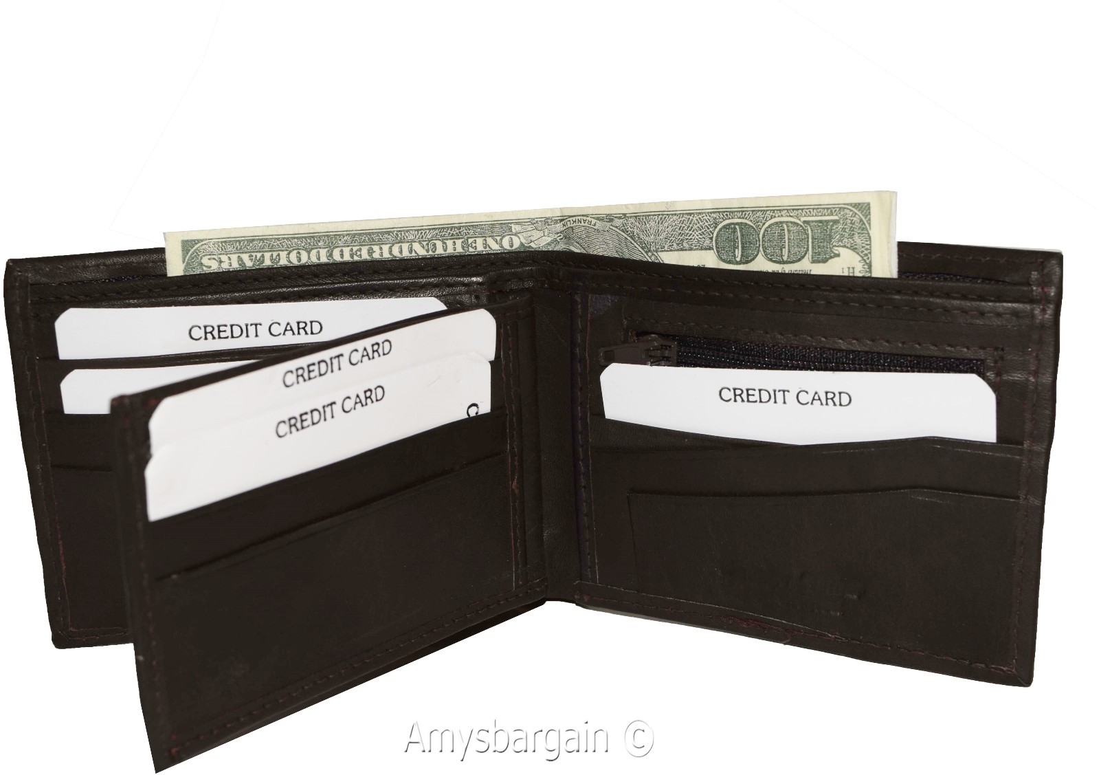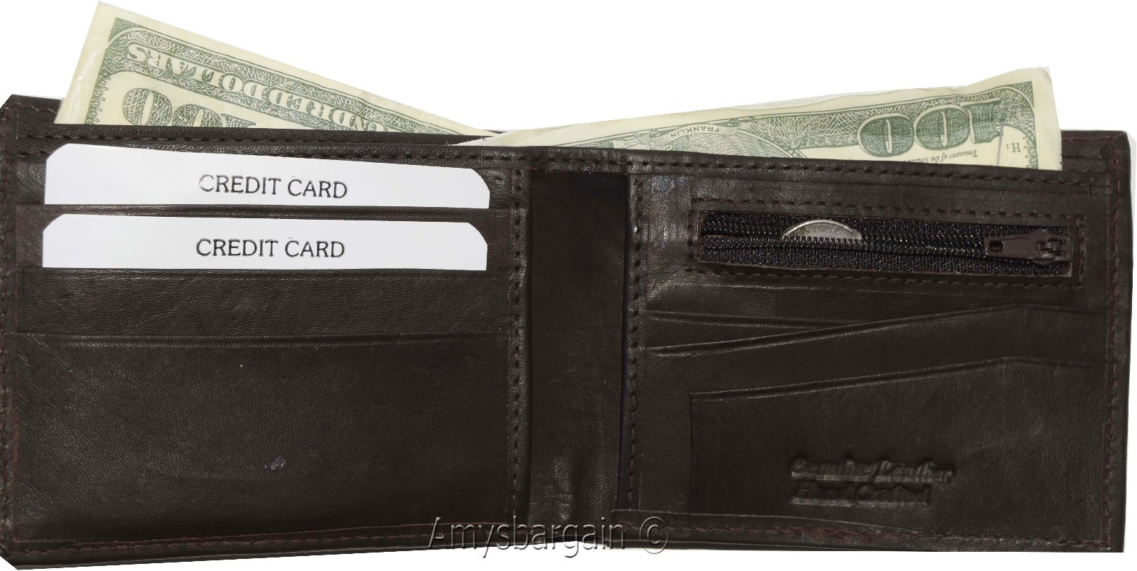 - 3 1/2 Billfold compartments, 1 with a zipper.