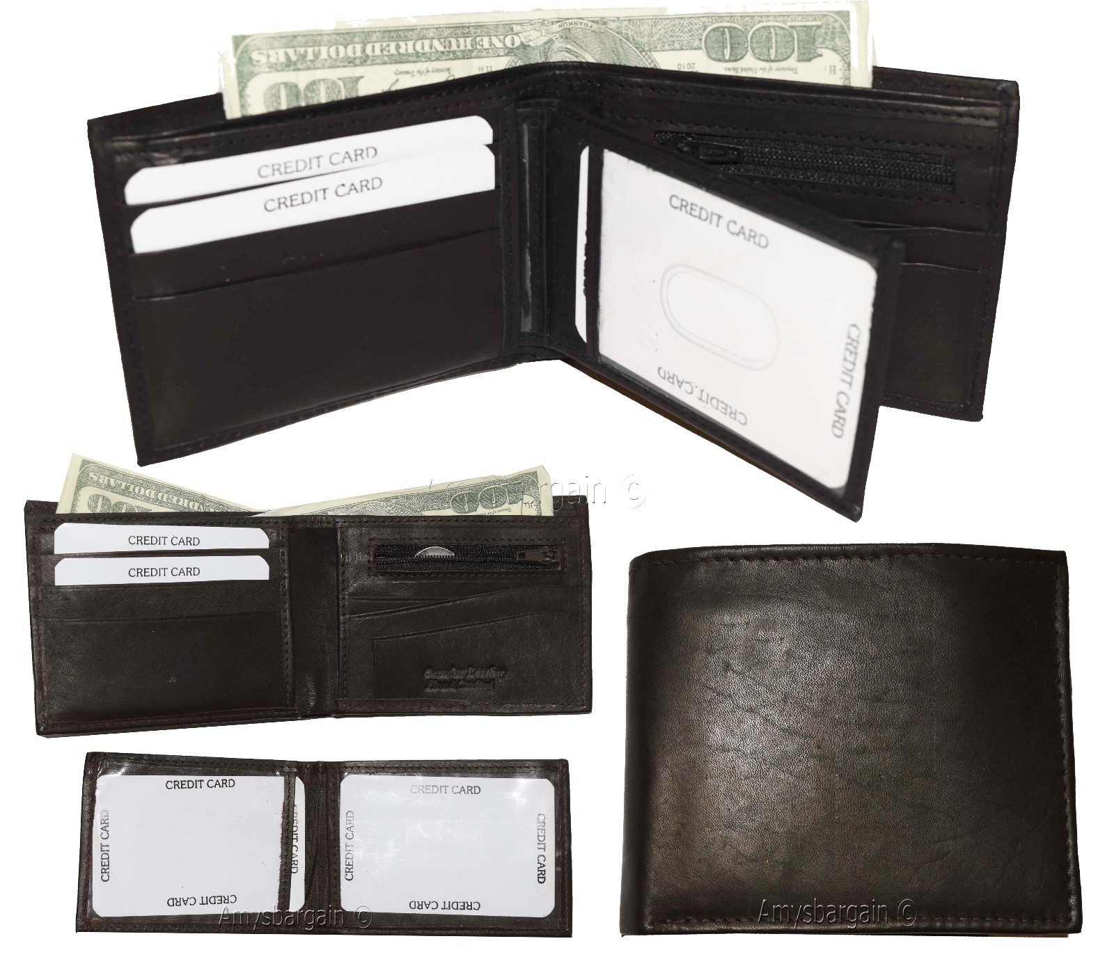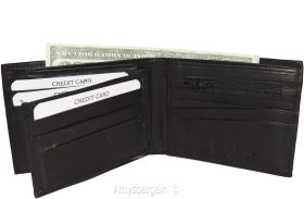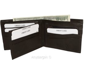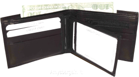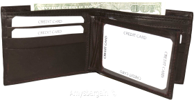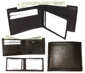 Description:Buy the lot and save a lot.Ask us about our wholesale prices that can help you grow or start your business.This man's wallet is a 2-in-1. It's a full size wallet with a detachable miniature wallet that has a small billfold, 3 card slots and 3 ID windows.(1) The main wallet has 6 card spaces, a mini zip coin pocket, 3 billfolds: 2 open for easy access 1 zip.(2) The miniature detachable wallet has 3 card slots, a small billfold and 3 ID windows.This fine leather wallet would make a great gift item, or treat yourself to it.Act now. It won't last at this price!Item Details: