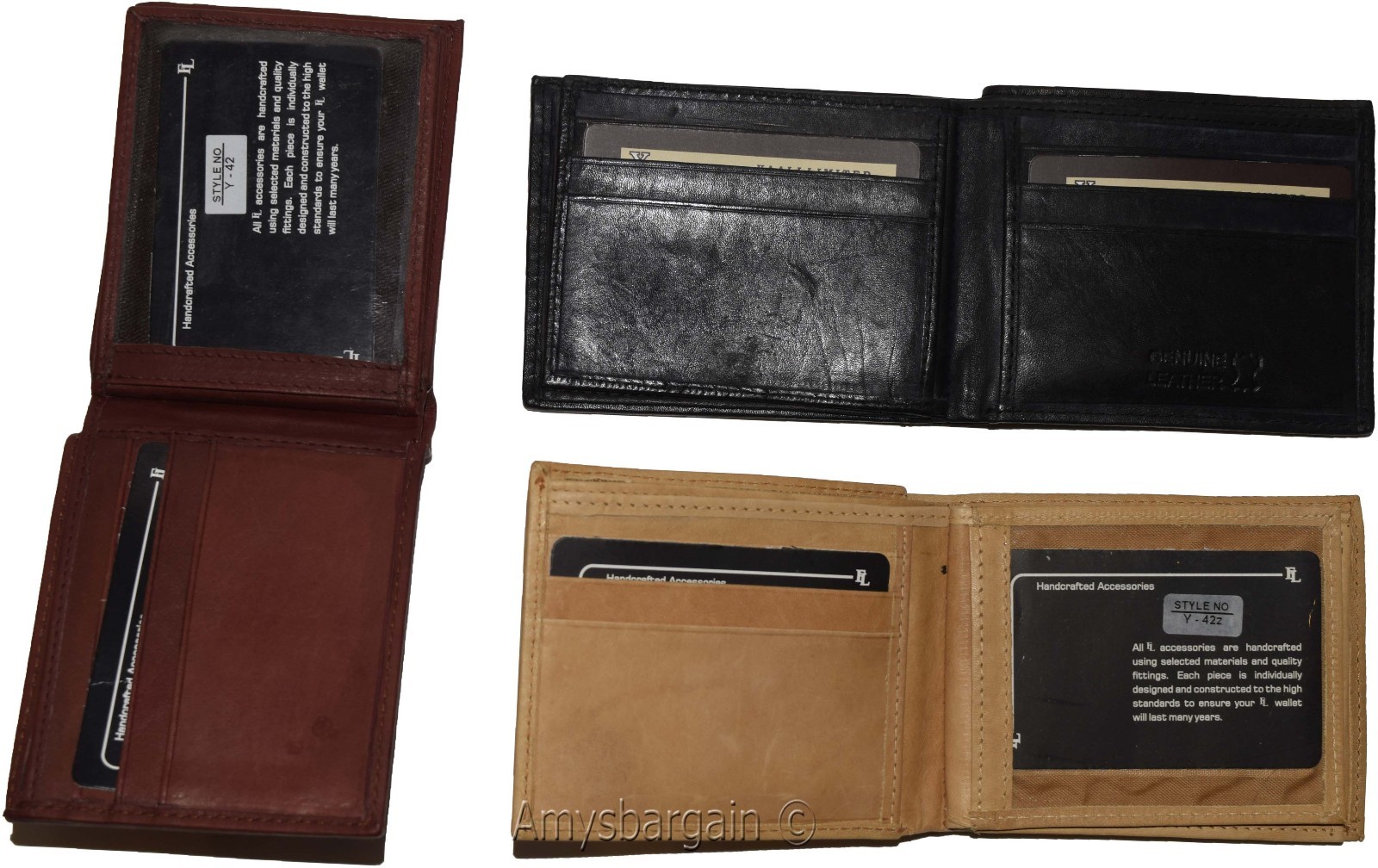 Lot of 3 Men's Bifold leather wallet 2 center pieces 9 card 3 ID leather wallet.