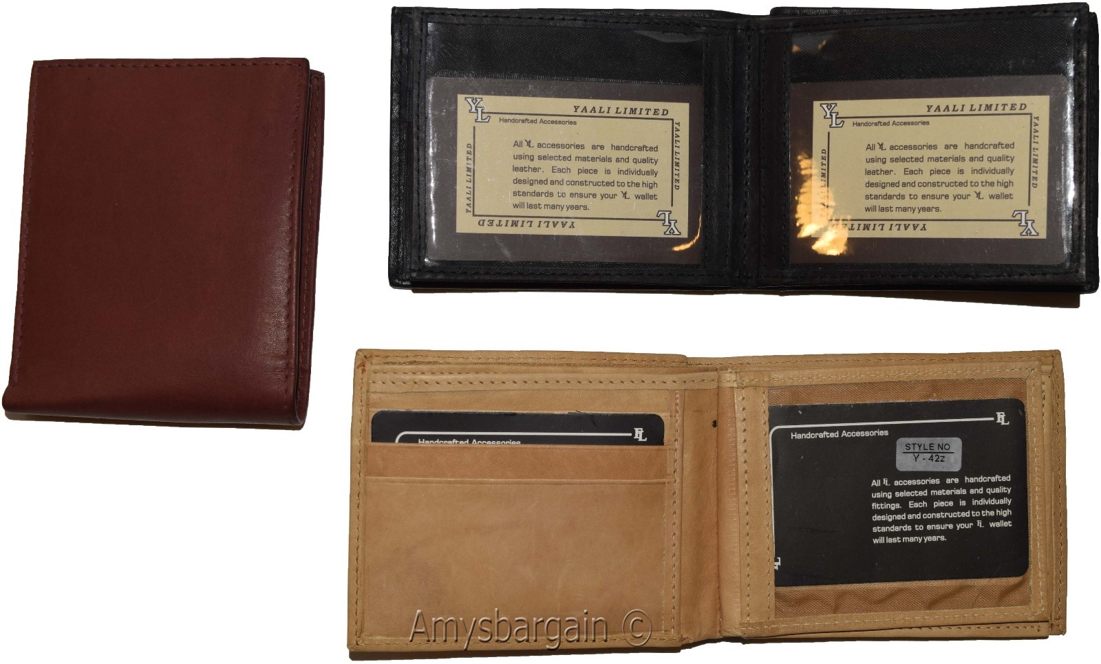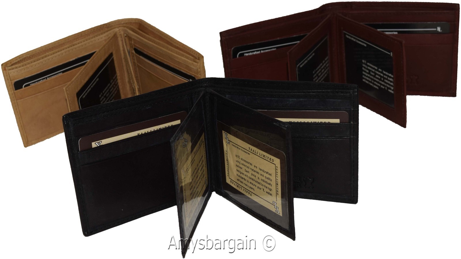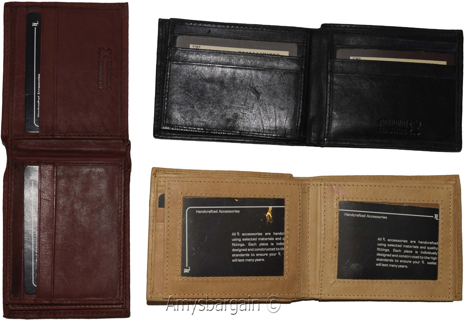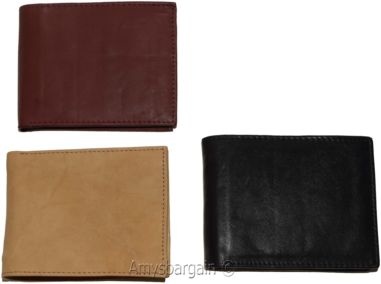 Lot of 3 Men's Bifold leather wallet 2 center pieces 9 card 3 ID leather wallet.