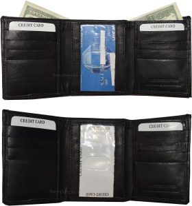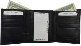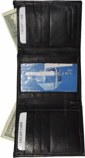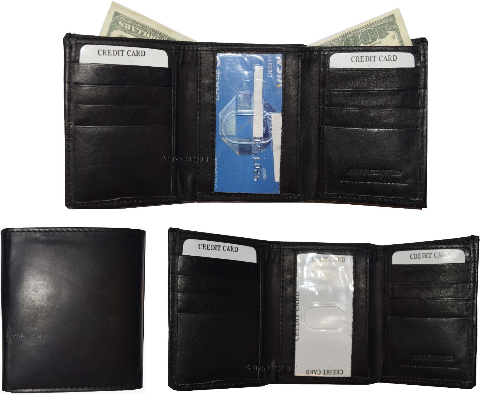 Lot of 3 Men's Trifold Leather Wallet 8 credit card ID Black billfold wallet NWT