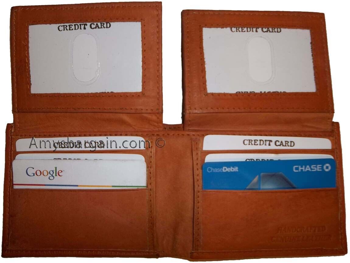 Description:This wallet is made out of top quality top grain cow hide leather. This man's wallet has 2 easy in-and-out ID windows, 12 card spaces and 2 suede lined bill fold compartments.This wallet would make a nice gift , or, treat yourself to it.Item Details: