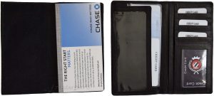 Lot of 3 New leather Checkbook wallets Black Cognac Credit card zip change purse.Description:This large checkbook wallet has many compartments for separating bills, credit and ATM cards, ID, change and more. It is made out of soft leather that is exceptionally durable.Item Details: