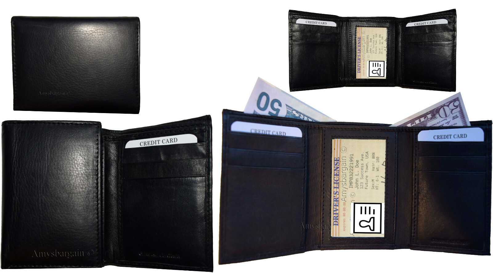 Lot of 3 New leather man's trifold wallet ID case 2 bill slots 6 credit cards.