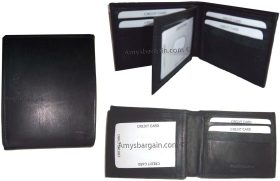 Lot of 3. New men's Black leather billfold wallet 9 credit card space ID bifold.Description:This beautiful sued line interior top wallet has special features that are very practical. It would make an ideal gift for that special someone. Or, just treat yourselves to its qualities.It has an easy in-and-out ID window, 9 card spaces and 2 suede lined billfold compartments.Item Details:· Item: Leather man's wallet.· Material: Fine grain Leather.· Lining: Sued lined interior.· 9 card spaces· 2 Billfold compartments.· 1 ID window.· : Top grain leather.· Dimensions: 4.25" x H 3.25 inches.· Color: Black. View images please.Style #: 786CD.Buy it now it won't last!Manufacturers Suggested Retail Price (MSRP) $21.95. each.