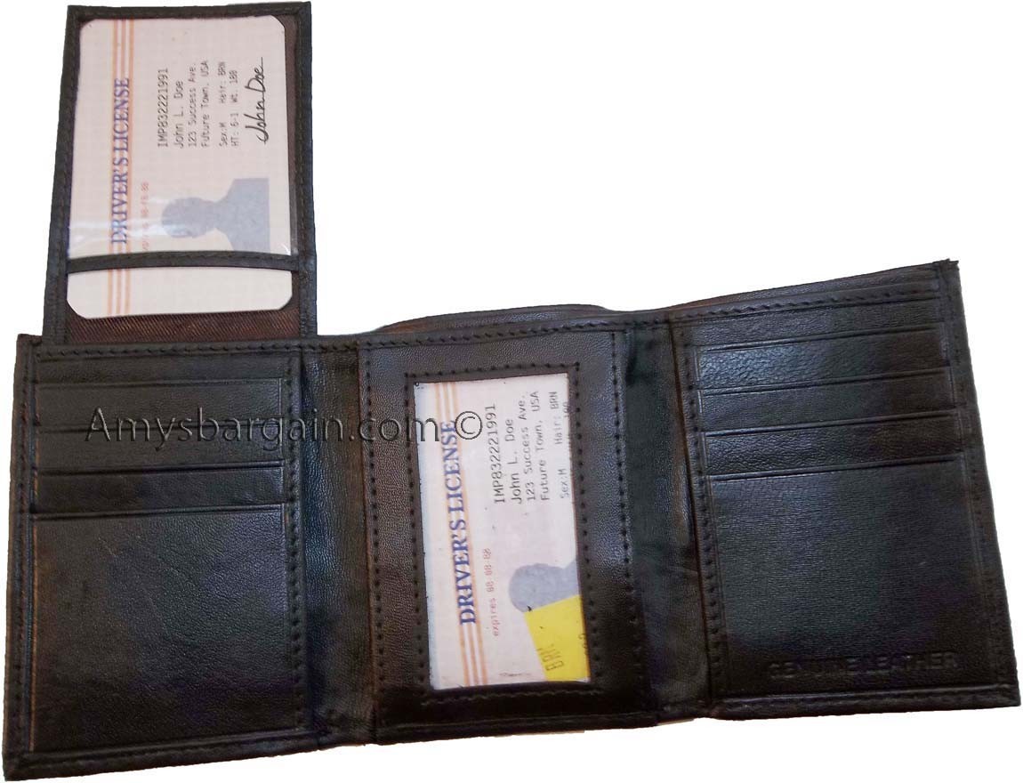 Lot of 3 New Trifold Leather Man's wallet 2 ID 6 card 2 bill slots br new wallet