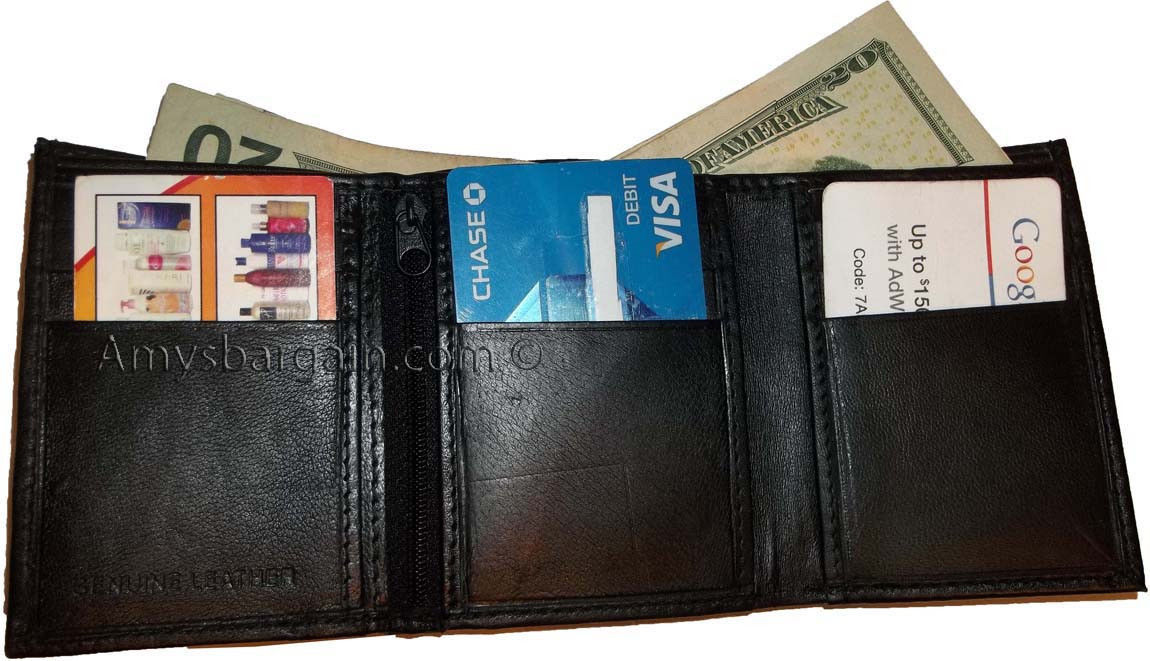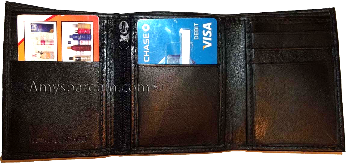 | Features | Easy-in-out transparent ID window, Folding, Zip change purse |
