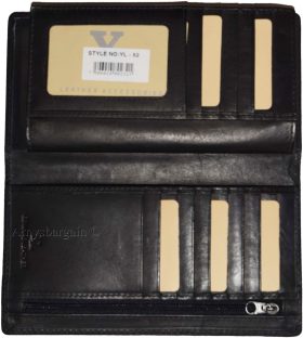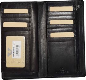 This is a compact leather checkbook wallet. It is made out of selected smooth cowhide. It offer a generous 14 card payload, 2 side spaces for inserting checkbooks, receipts or currencies. It also has a built in ID window.