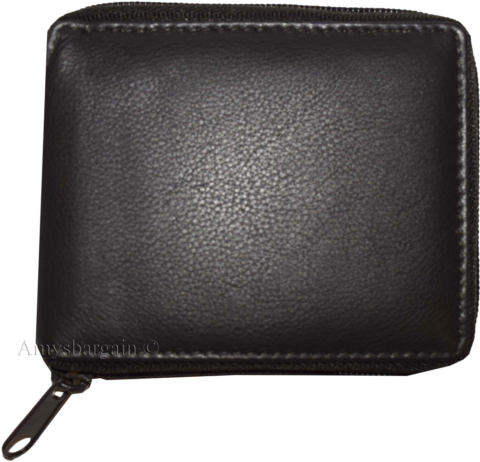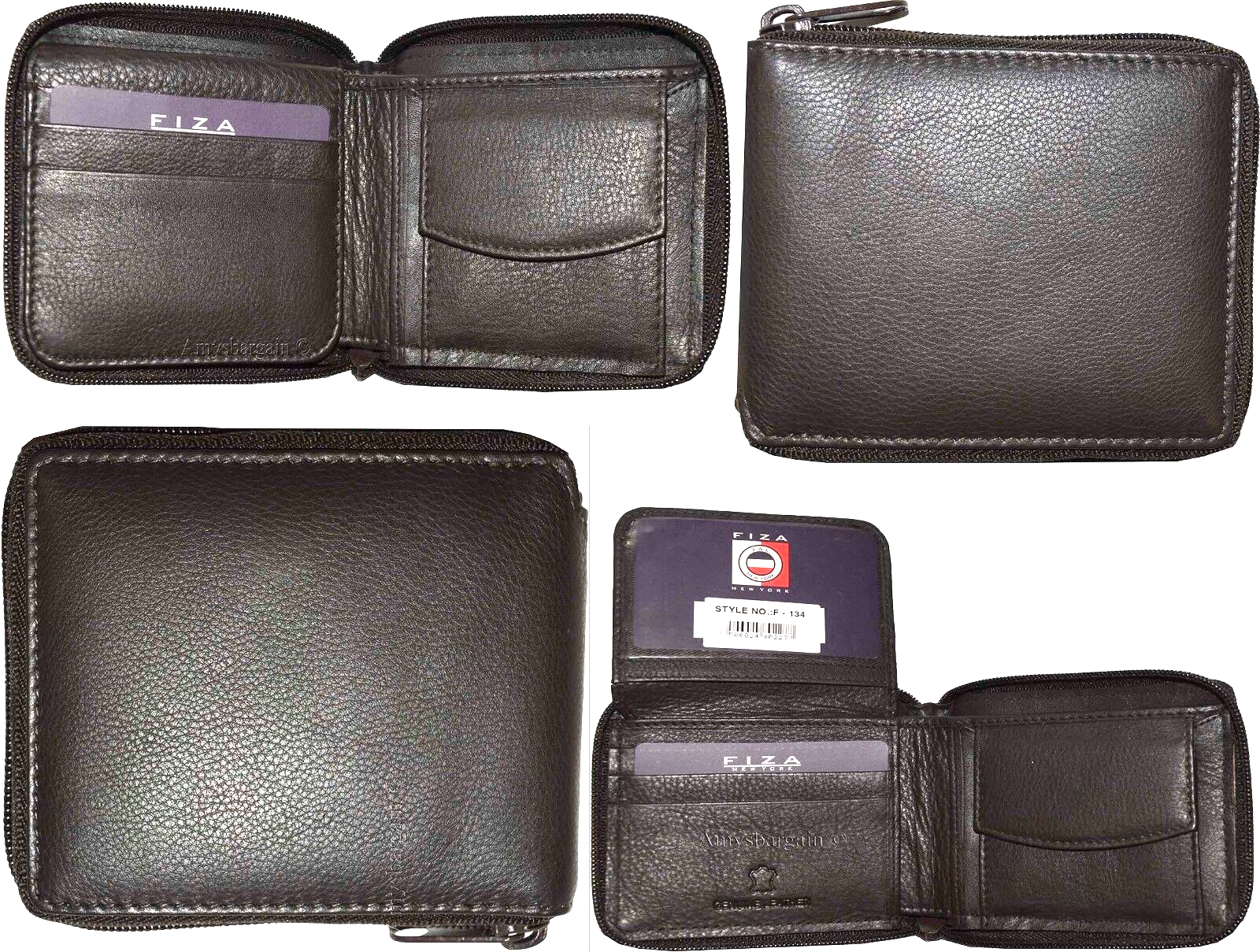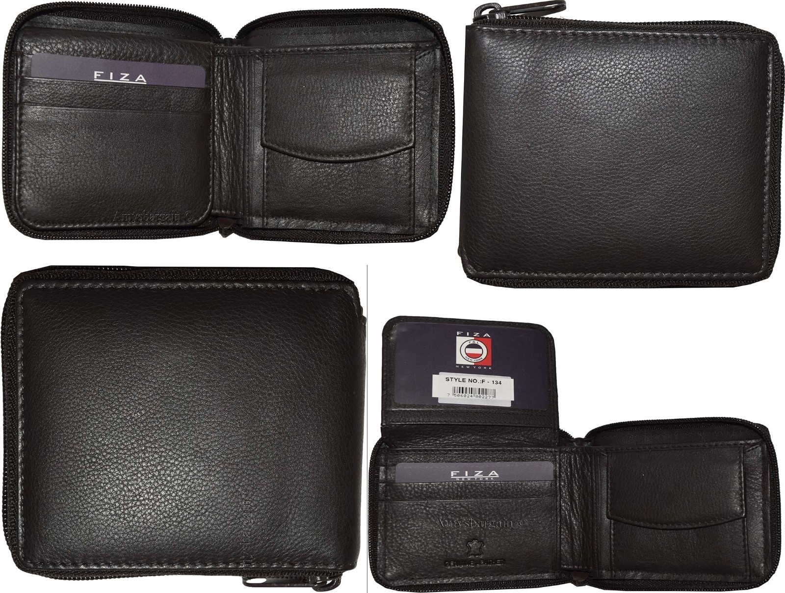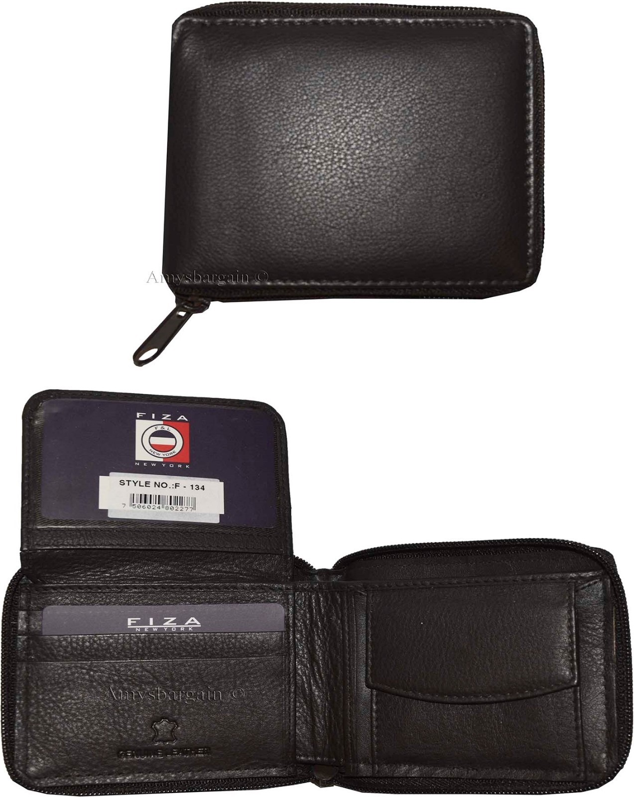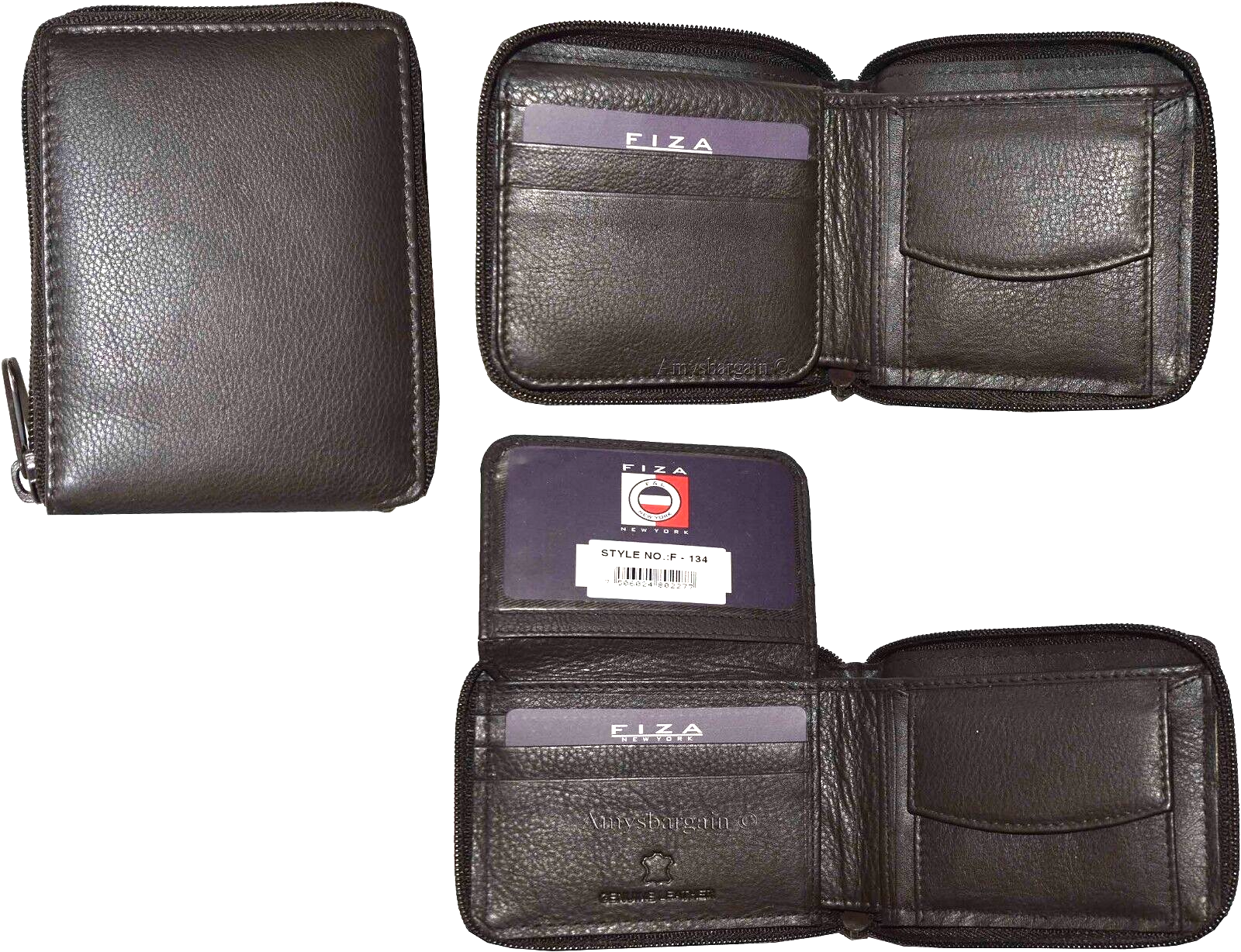Lot of 3 Zip around FIZA NY leather men's wallet Brown Bi-fold wallet 6 card BN