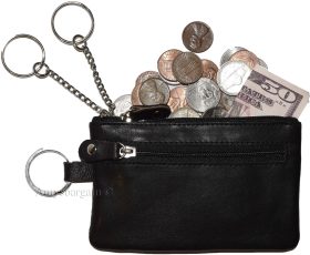 Lot of 4. Change purse, Leather Zip coin wallet 2 pocket coin case W/ key ring.