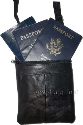 leather all purpose neck string pouch with 3 zip pockets.It can fit up to 6 passports in 1 pocket.