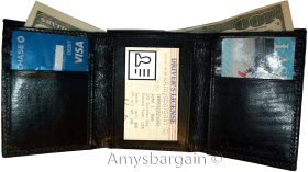 It has an easy in-and-out ID window, 9 card spaces and 2 lined bill fold pockets.
