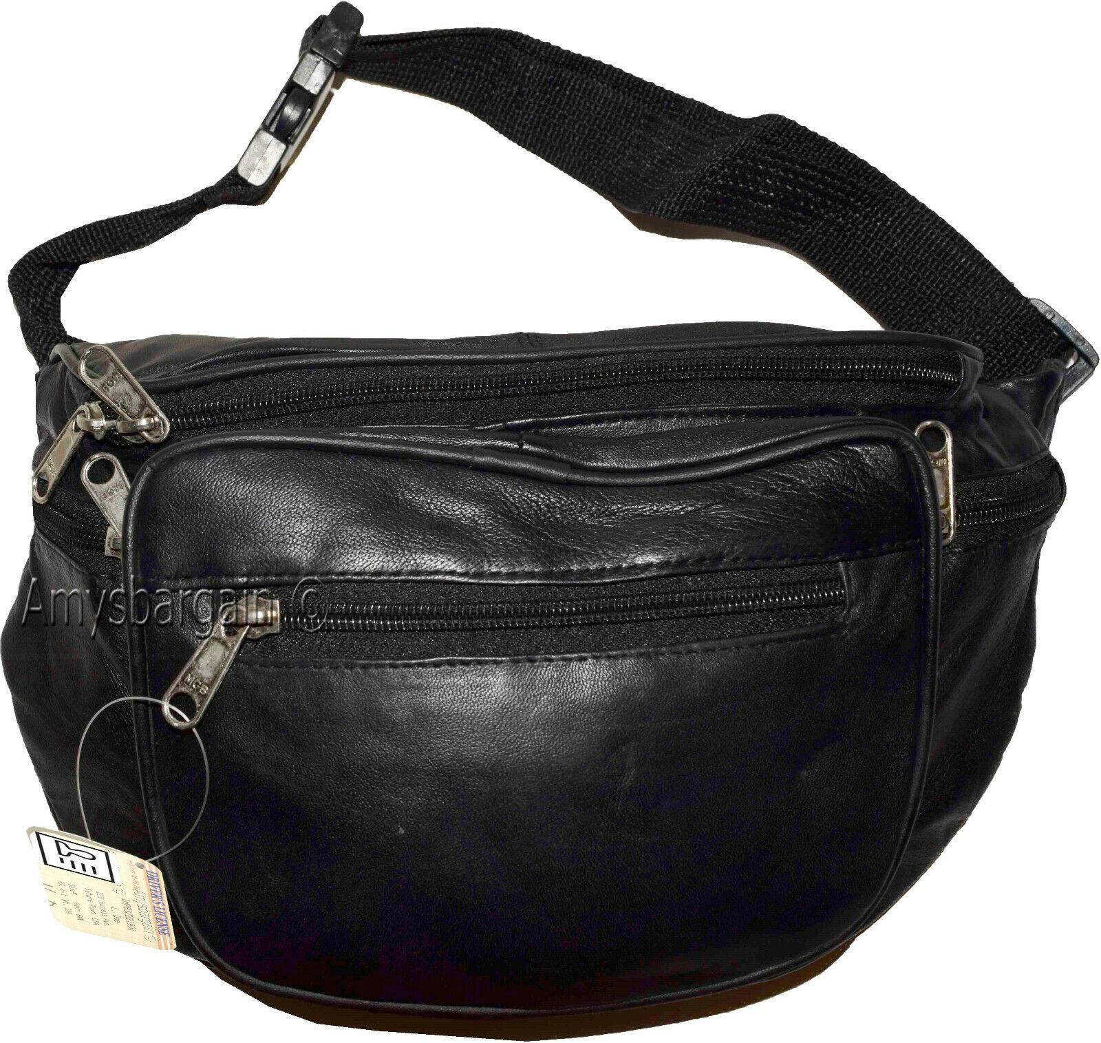 Lot of 4 Large Leather waist pouch Black waist bag leather bag Jumbo Fanny pack.Description:This is a Jumbo size leather waist pouch, it is made out of a very soft lamb skin fine grain leather, it comes with 5 zip pockets and an adjustable waist strap.Act nowItem Details:
