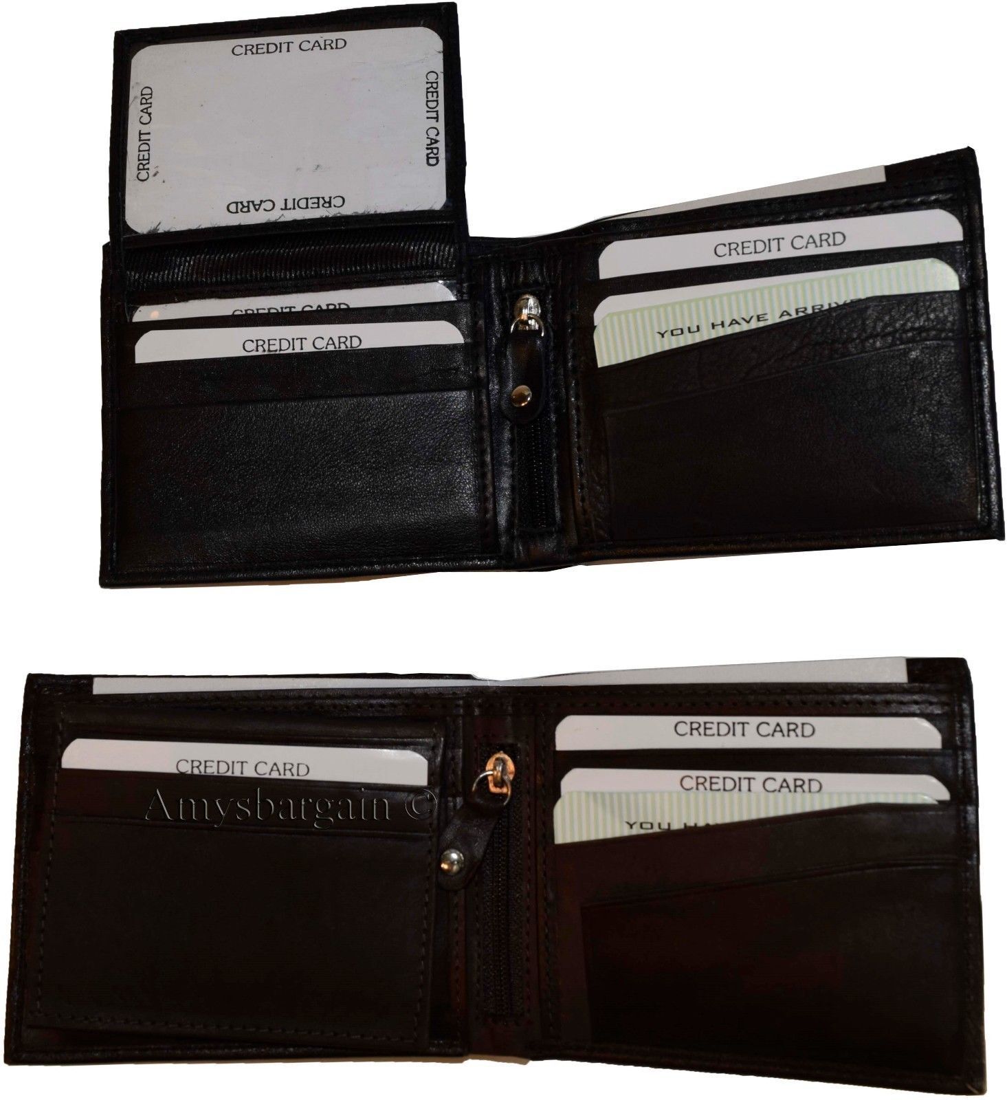 Lot of 4 Men's Bifold Leather wallet Genuine leather 3 bill slot Zip case New.Description:This is a very stylish extra soft and strong leather men's unbranded wallet with 2 detachable ID cases. It has a zip change purse, 2 billfolds, 1 hidden extra bill fold and 10 card slots. This wallet would make a great gift idea, or, treat yourselves to its qualities.It has 2 ID windows, 10 card spaces and 3 billfold pockets.Act now! it won't last!Item Details:
