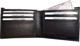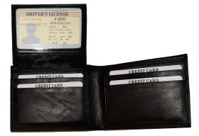 Description:This man's fine quality soft calfskin leather wallet would make a nice gift for that special someone that has it all, or treat yourself to it.This man's wallet is a full size wallet with a flap section that has a built in ID window and 3 card spaces.Item Details: