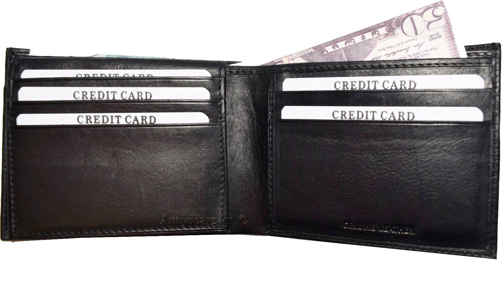 lot of 4 men's black bifold calfskin leather 2 bill slots 7 card 1 id window new