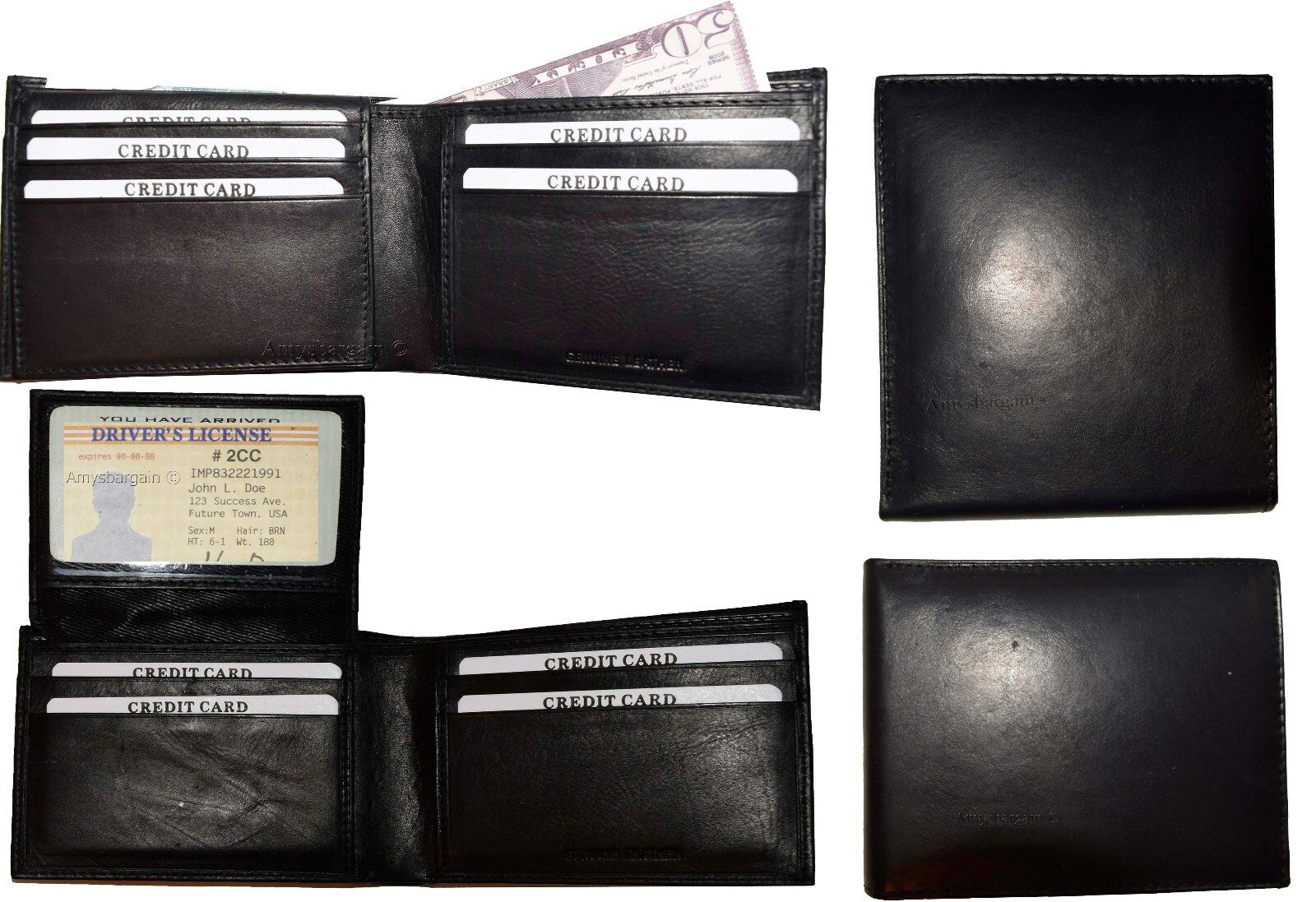 lot of 4 men's black bifold calfskin leather 2 bill slots 7 card 1 id window new.